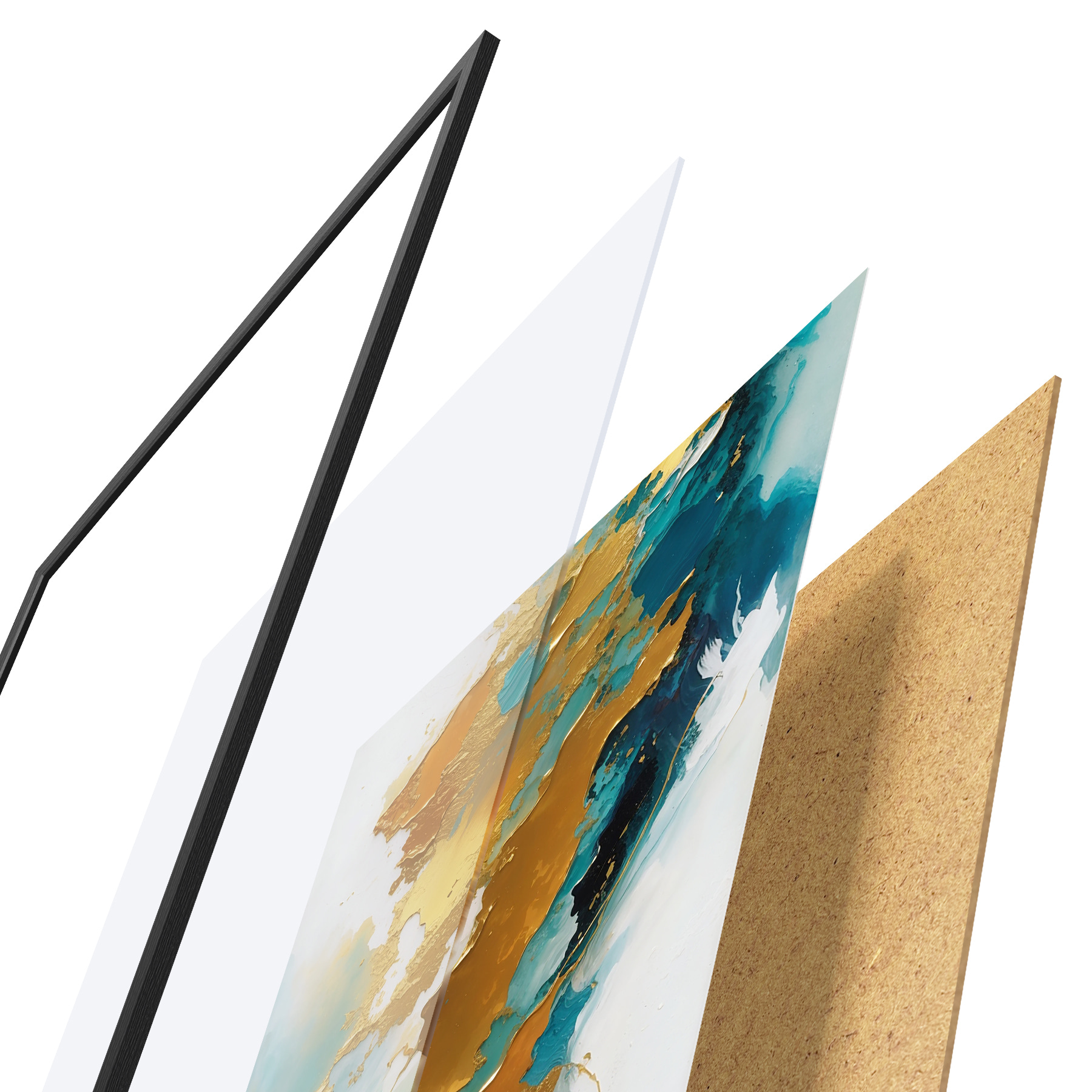 El póster consta de marco, plexiglás, imagen impresa y soporte de aglomerado. El póster puede colgarse inmediatamente en la pared gracias a los soportes de la parte posterior.