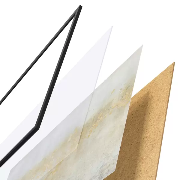 El póster consta de marco, plexiglás, imagen impresa y soporte de aglomerado. El póster puede colgarse inmediatamente en la pared gracias a los soportes de la parte posterior.