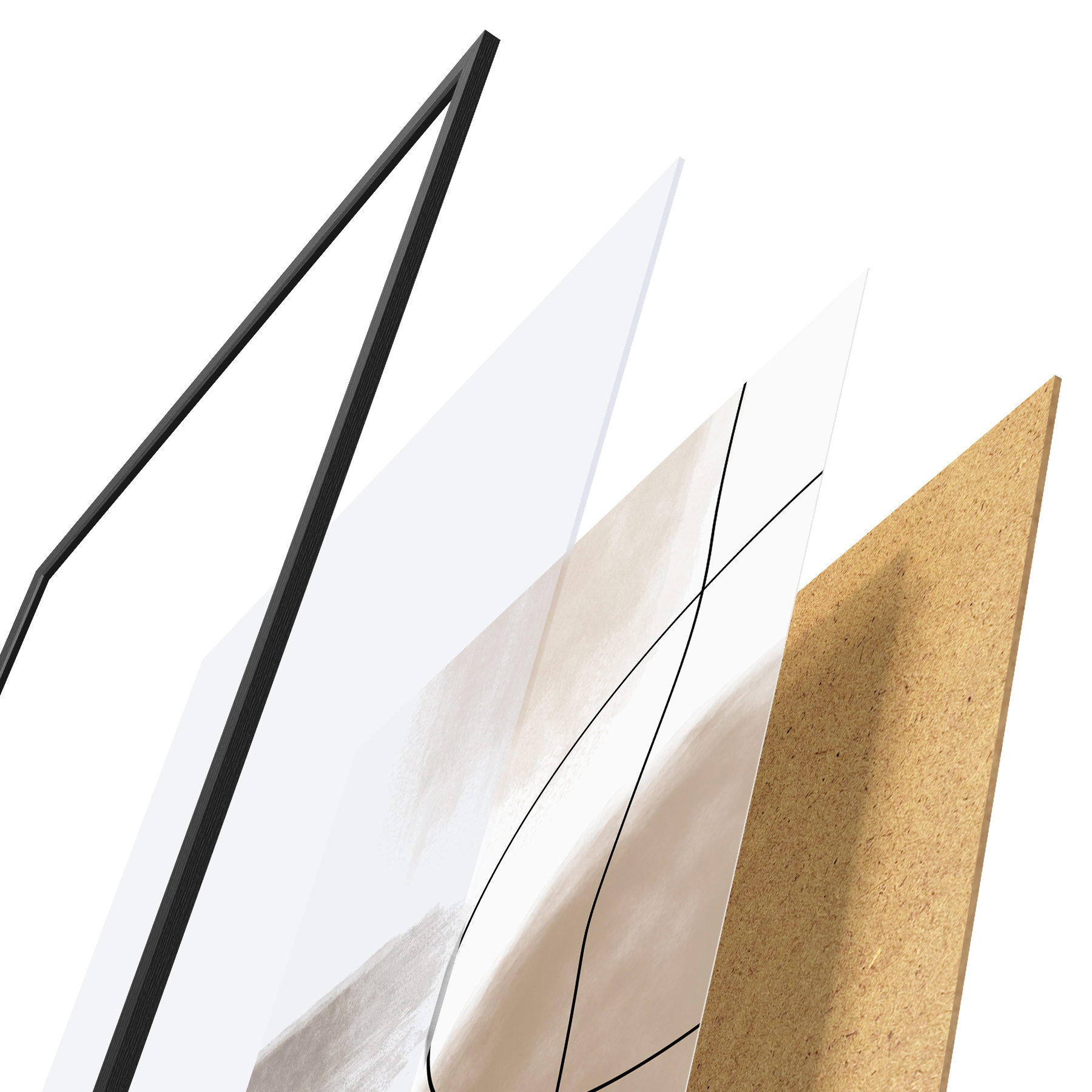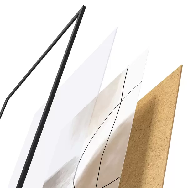 El póster consta de marco, plexiglás, imagen impresa y soporte de aglomerado. El póster puede colgarse inmediatamente en la pared gracias a los soportes de la parte posterior.