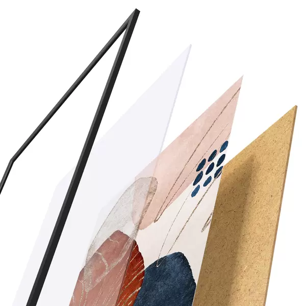 El póster consta de marco, plexiglás, imagen impresa y soporte de aglomerado. El póster puede colgarse inmediatamente en la pared gracias a los soportes de la parte posterior.