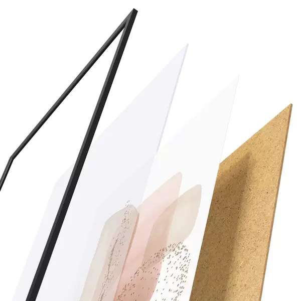 El póster consta de marco, plexiglás, imagen impresa y soporte de aglomerado. El póster puede colgarse inmediatamente en la pared gracias a los soportes de la parte posterior.