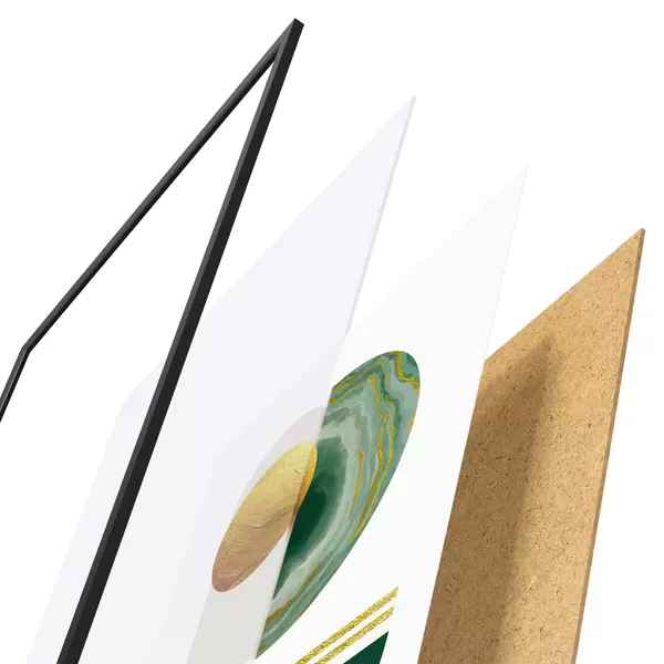 El póster consta de marco, plexiglás, imagen impresa y soporte de aglomerado. El póster puede colgarse inmediatamente en la pared gracias a los soportes de la parte posterior.