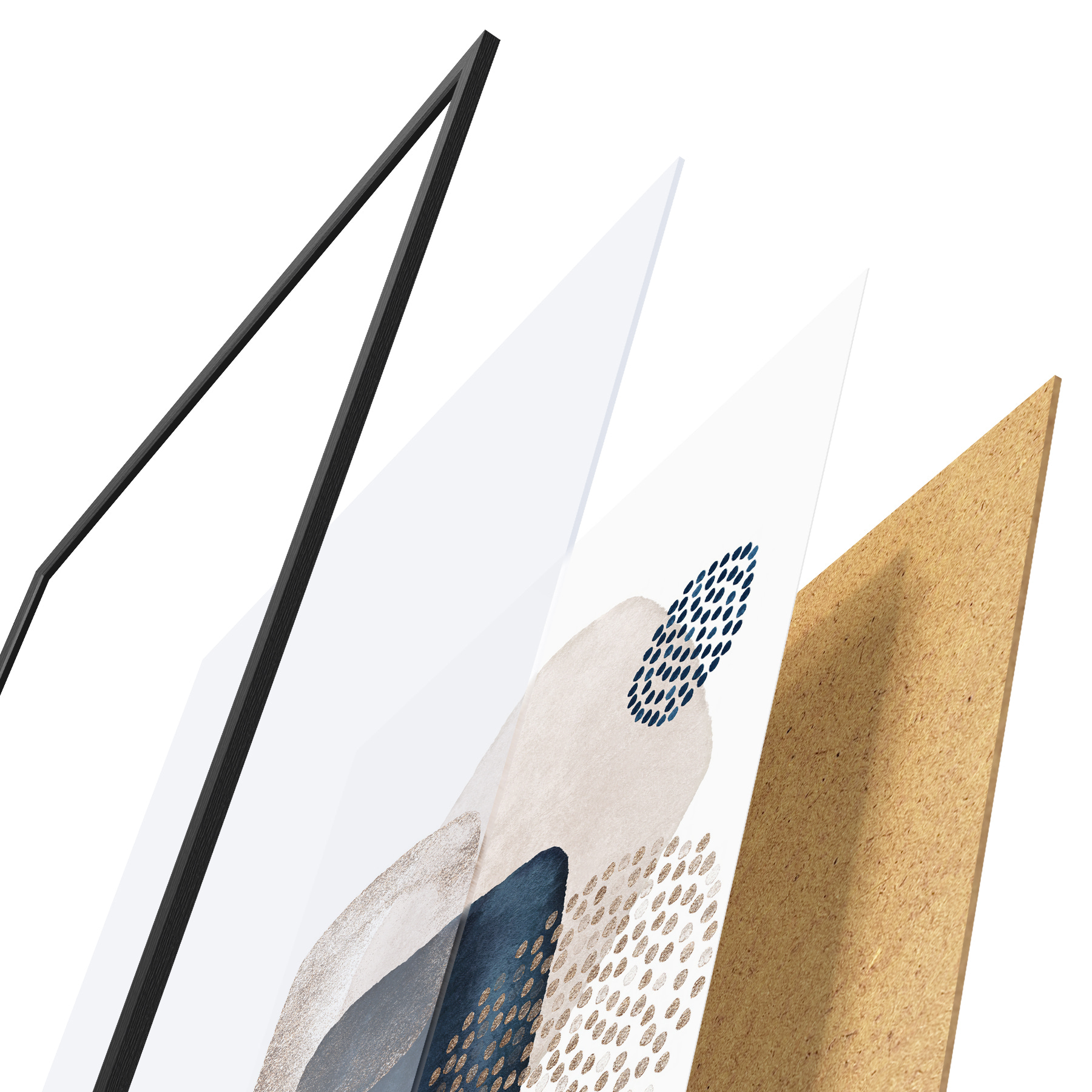 El póster consta de marco, plexiglás, imagen impresa y soporte de aglomerado. El póster puede colgarse inmediatamente en la pared gracias a los soportes de la parte posterior.