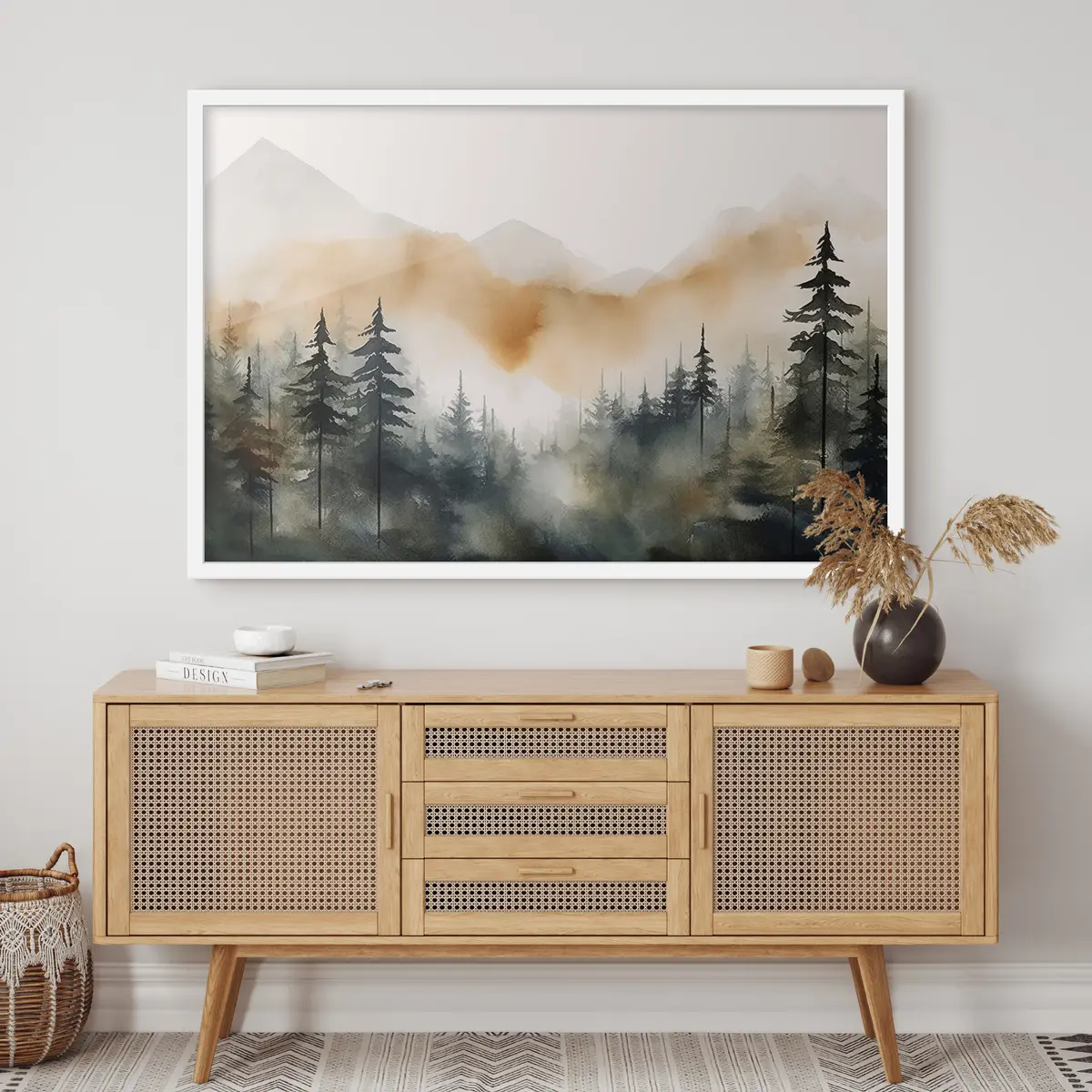 Poster Bosque de montaña brumoso al amanecer Nr f36008