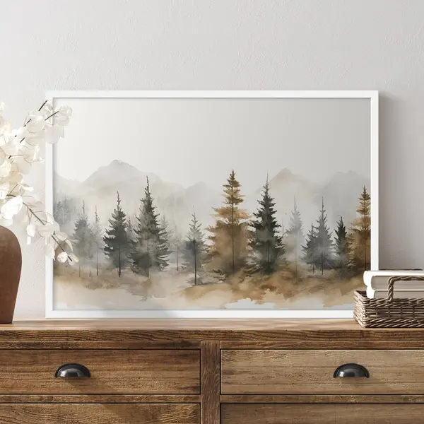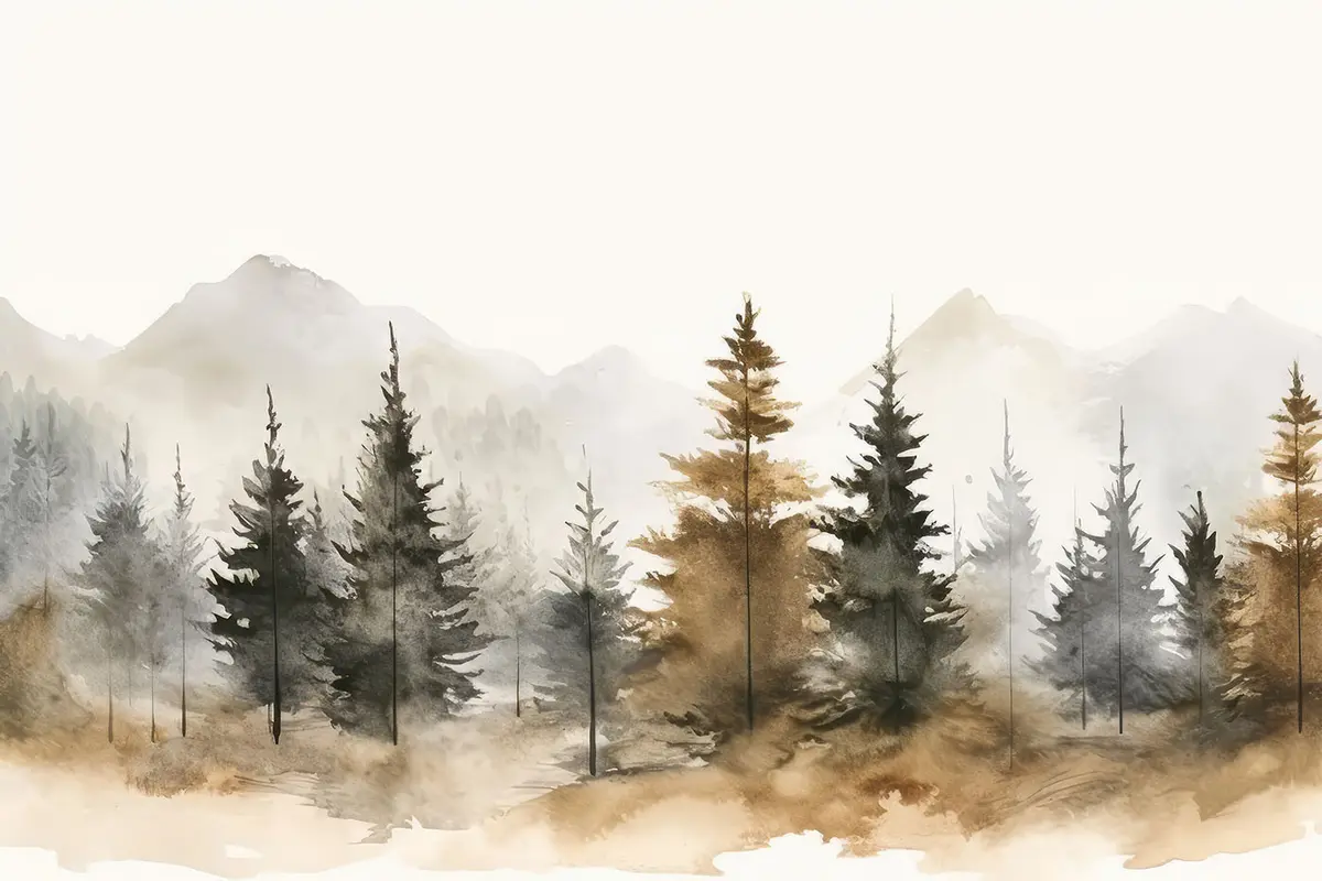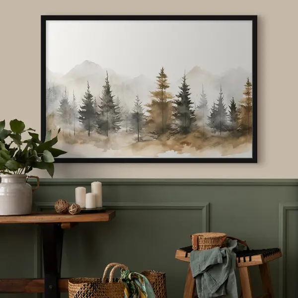Poster Tranquilo paisaje forestal en tonos suaves f36010