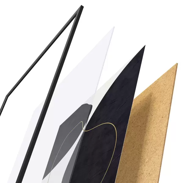 El póster consta de marco, plexiglás, imagen impresa y soporte de aglomerado. El póster puede colgarse inmediatamente en la pared gracias a los soportes de la parte posterior.