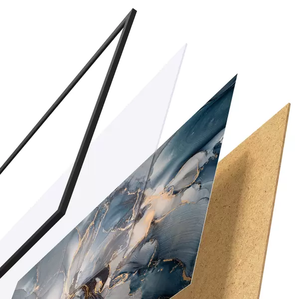 El póster consta de marco, plexiglás, imagen impresa y soporte de aglomerado. El póster puede colgarse inmediatamente en la pared gracias a los soportes de la parte posterior.