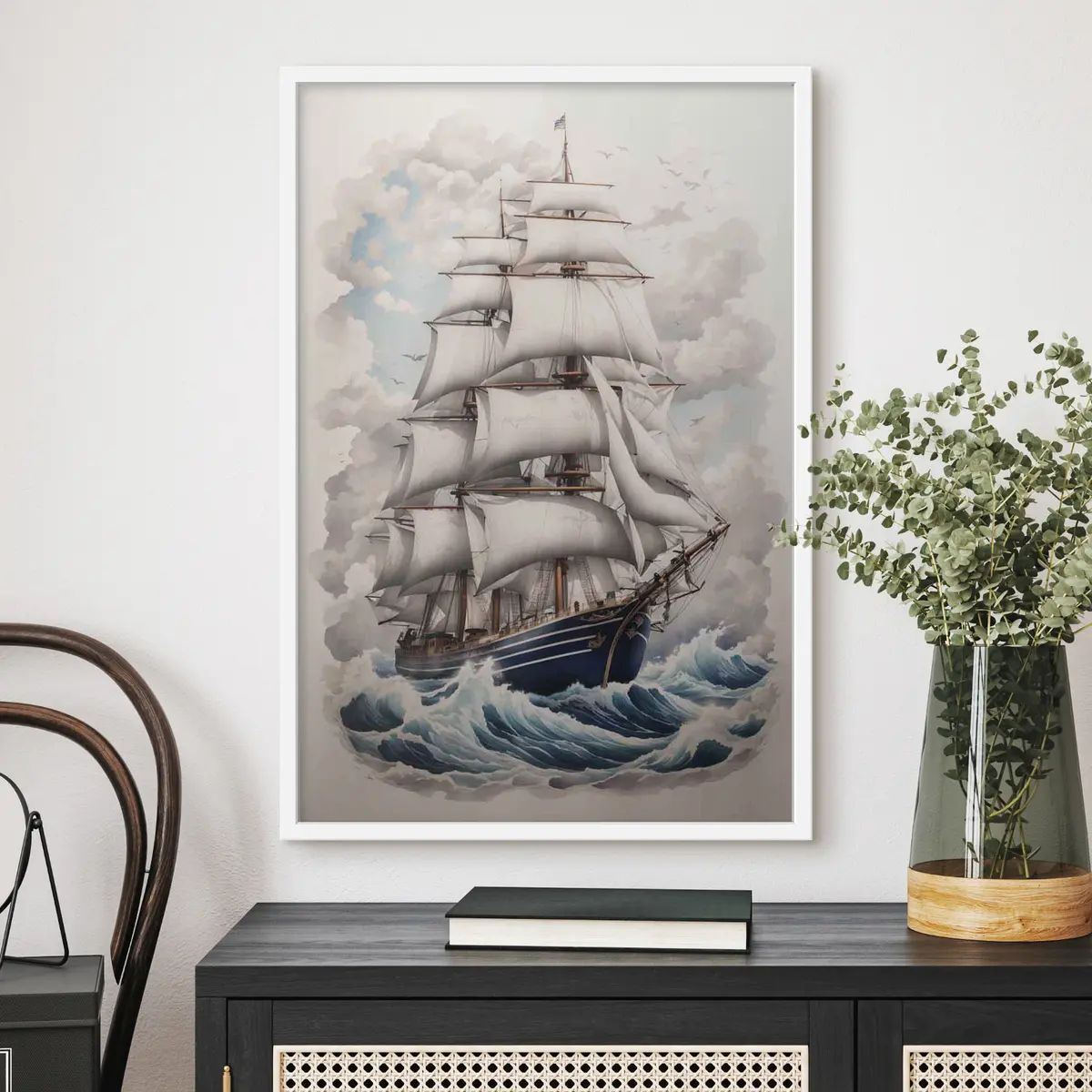 Poster Un gran velero surca el mar embravecido Nr f36047