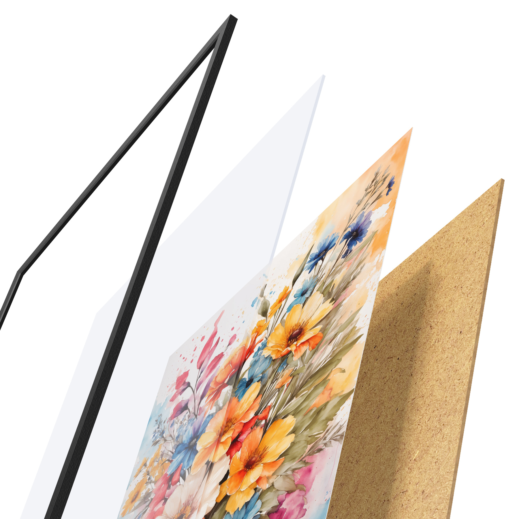 El póster consta de marco, plexiglás, imagen impresa y soporte de aglomerado. El póster puede colgarse inmediatamente en la pared gracias a los soportes de la parte posterior.