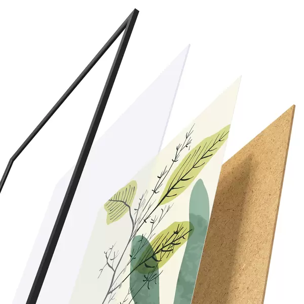 El póster consta de marco, plexiglás, imagen impresa y soporte de aglomerado. El póster puede colgarse inmediatamente en la pared gracias a los soportes de la parte posterior.