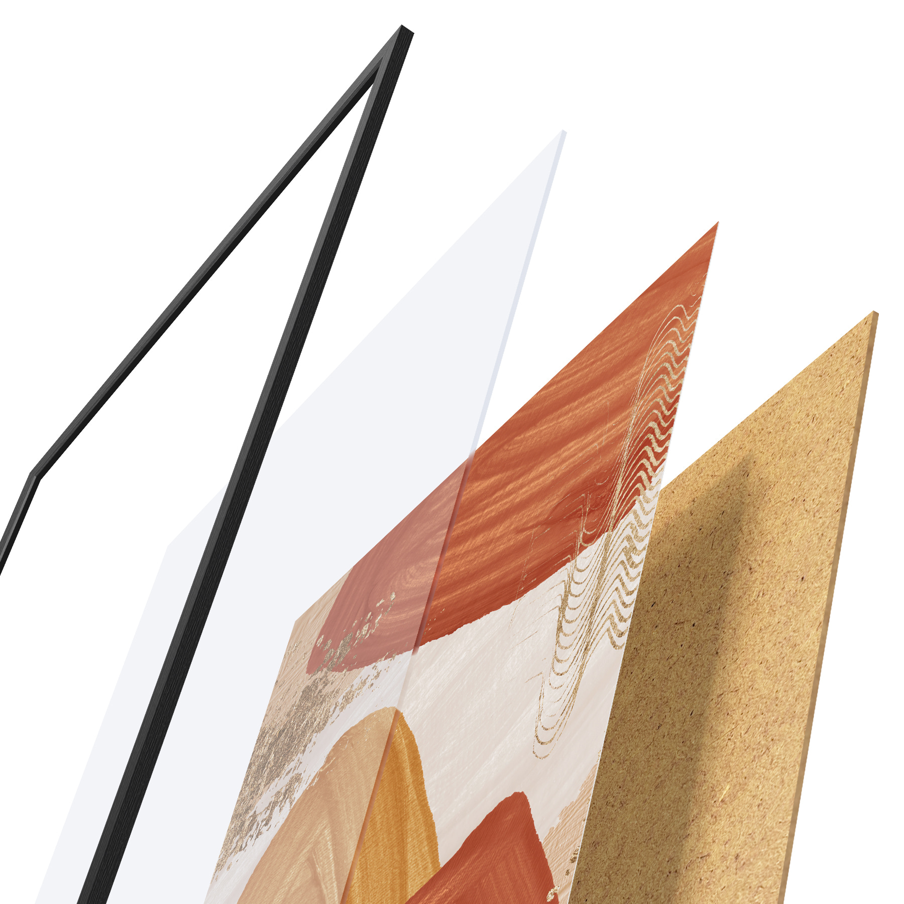 El póster consta de marco, plexiglás, imagen impresa y soporte de aglomerado. El póster puede colgarse inmediatamente en la pared gracias a los soportes de la parte posterior.