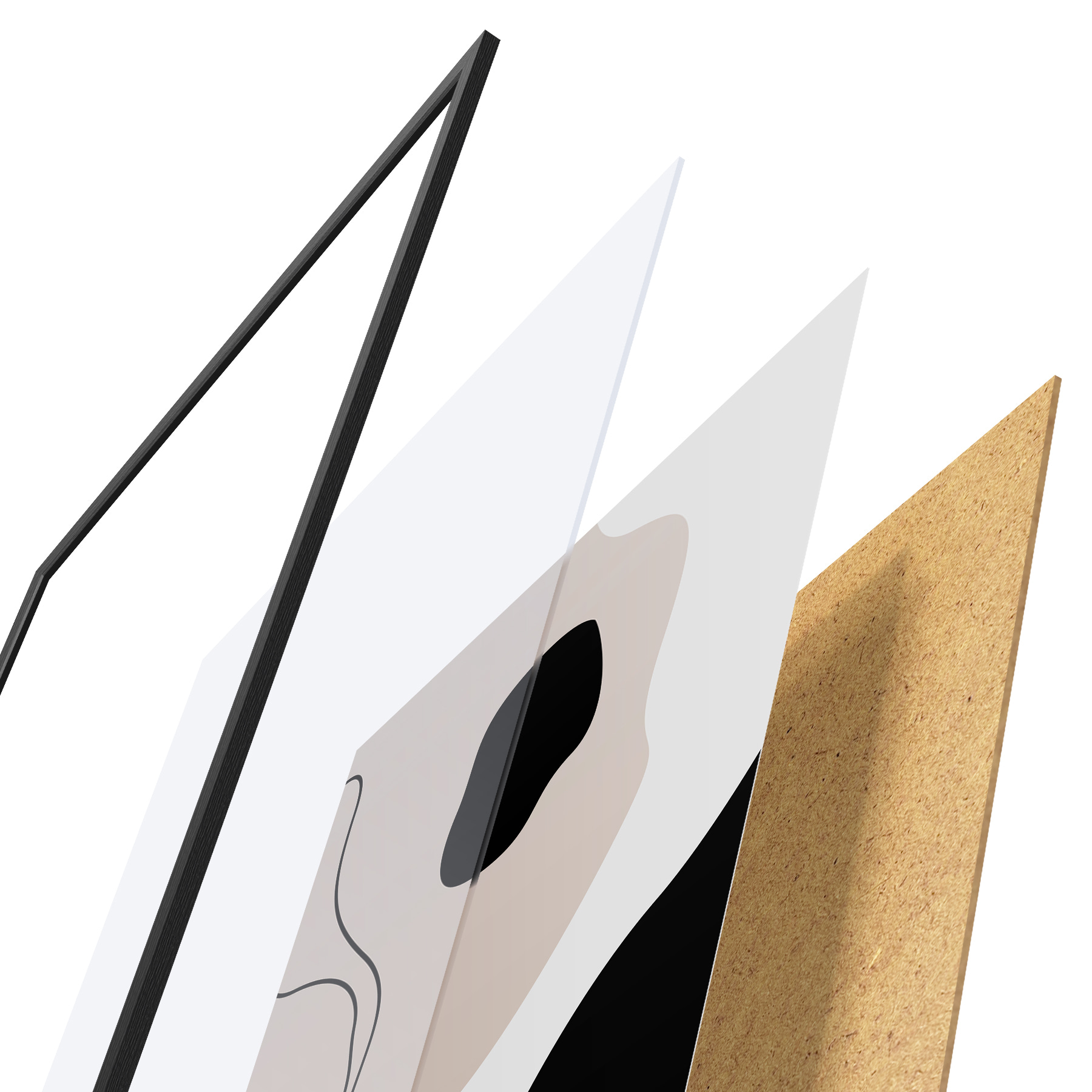 El póster consta de marco, plexiglás, imagen impresa y soporte de aglomerado. El póster puede colgarse inmediatamente en la pared gracias a los soportes de la parte posterior.