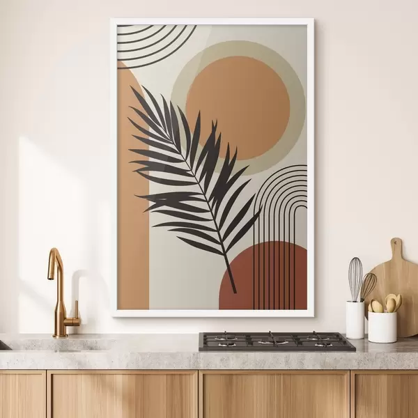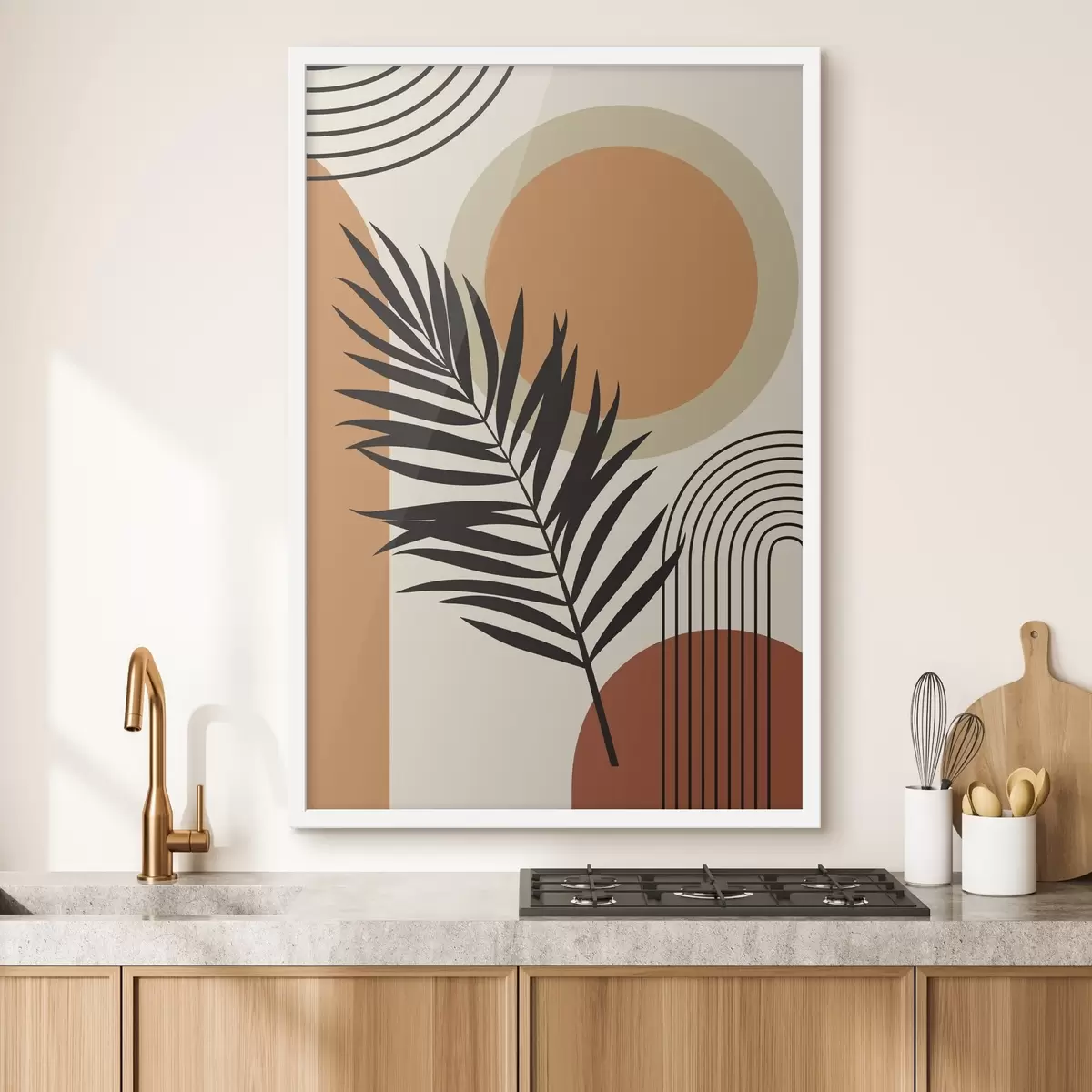 Poster Hoja de palmera sobre fondo geométrico Nr f36170