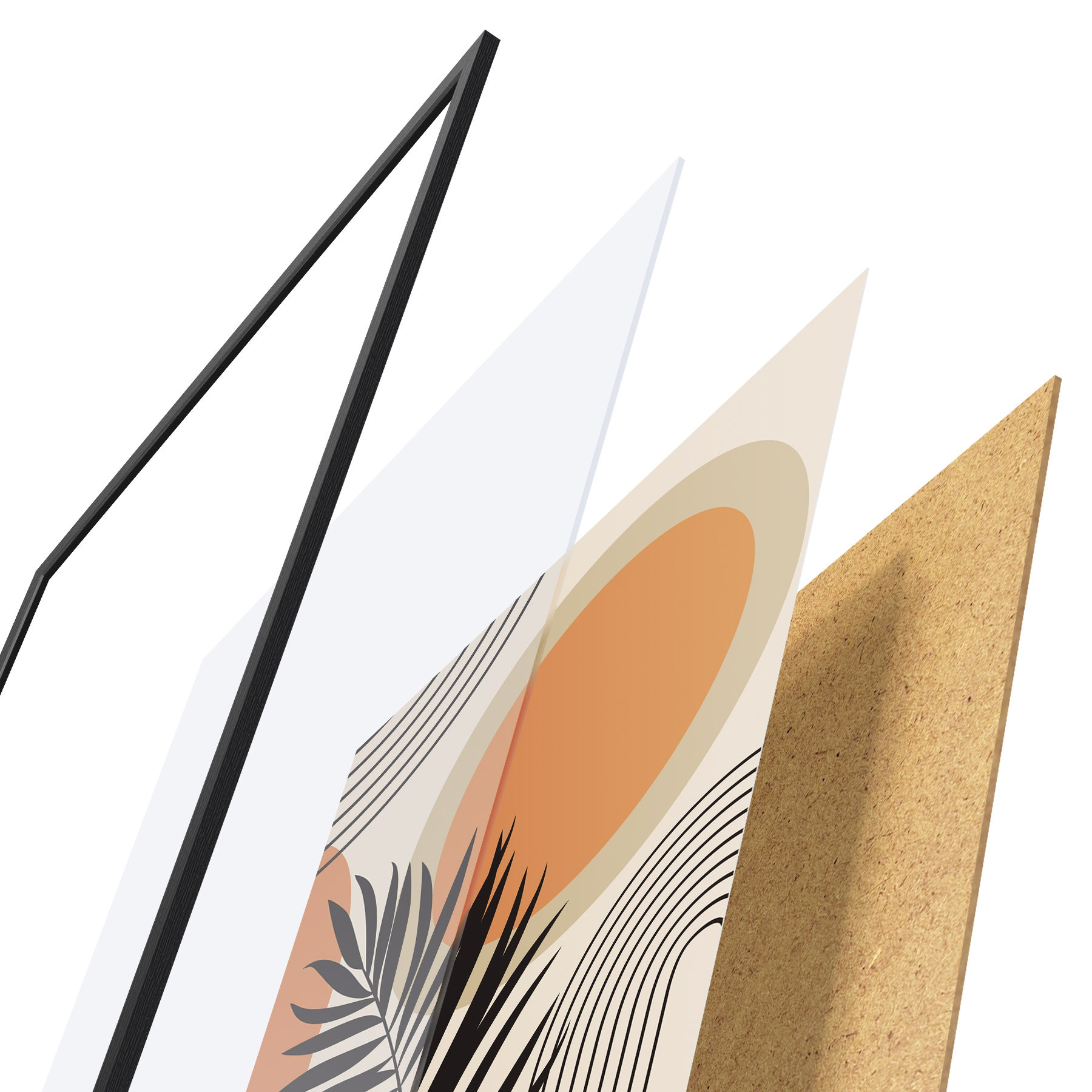 El póster consta de marco, plexiglás, imagen impresa y soporte de aglomerado. El póster puede colgarse inmediatamente en la pared gracias a los soportes de la parte posterior.