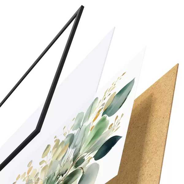 El póster consta de marco, plexiglás, imagen impresa y soporte de aglomerado. El póster puede colgarse inmediatamente en la pared gracias a los soportes de la parte posterior.