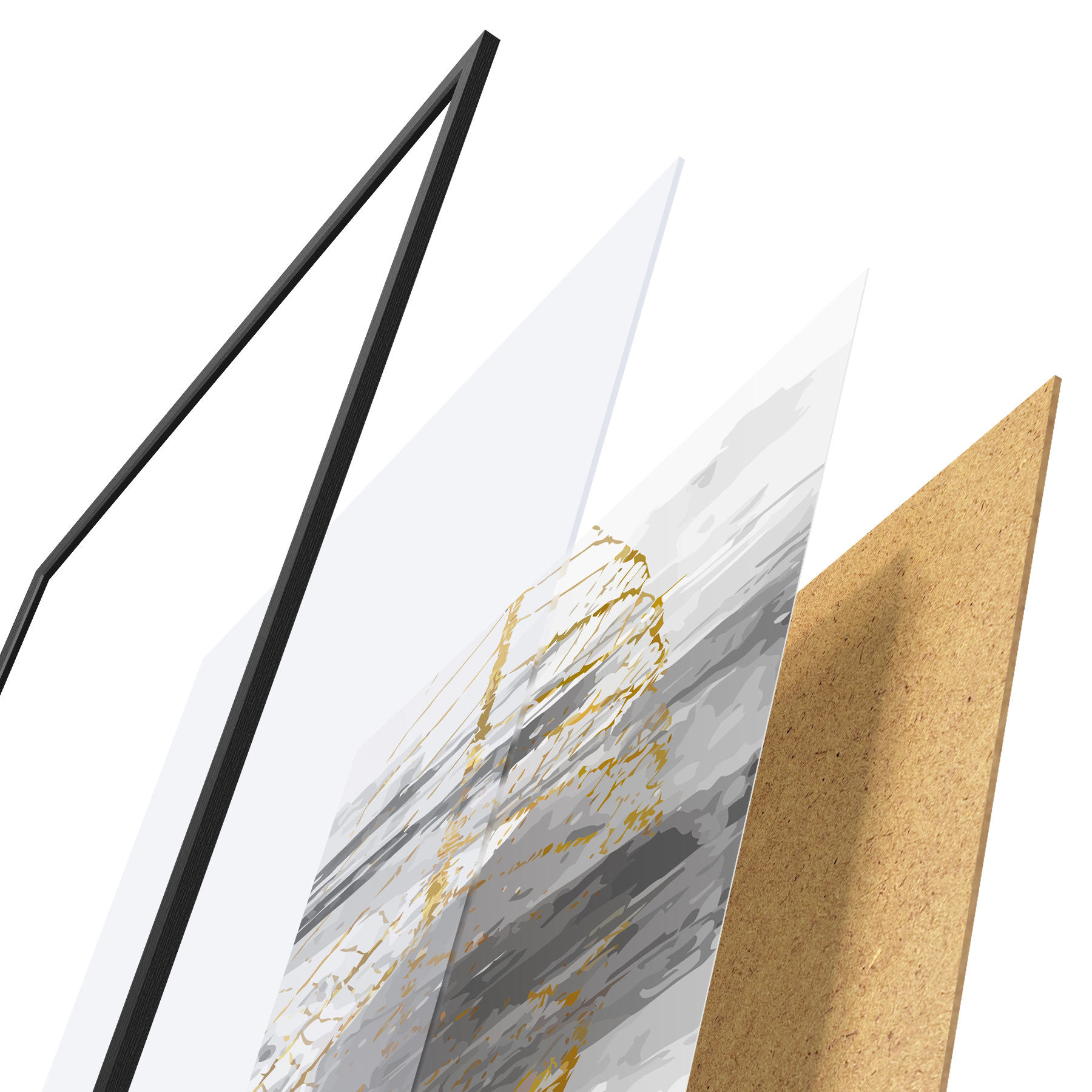 El póster consta de marco, plexiglás, imagen impresa y soporte de aglomerado. El póster puede colgarse inmediatamente en la pared gracias a los soportes de la parte posterior.