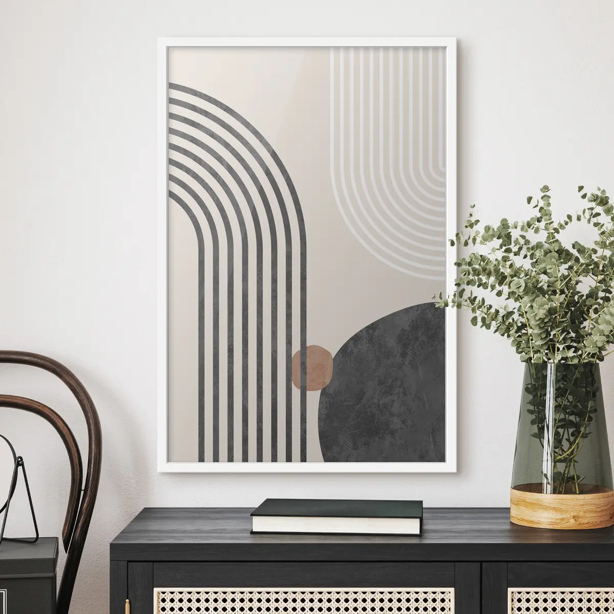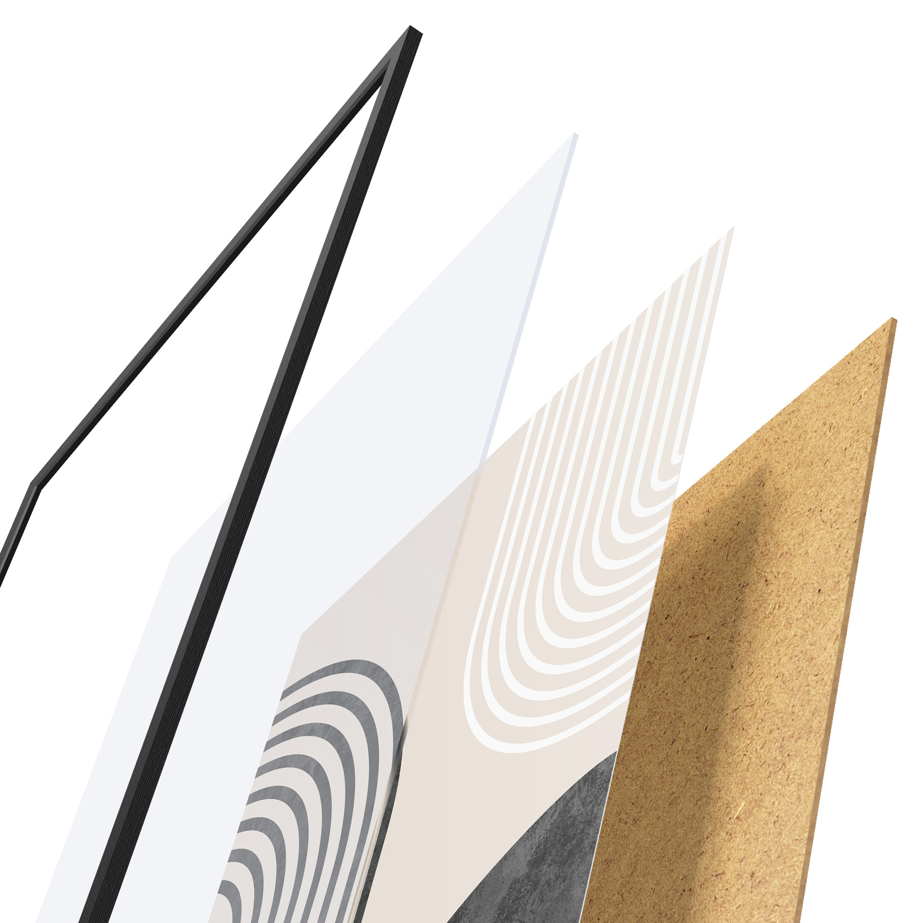 El póster consta de marco, plexiglás, imagen impresa y soporte de aglomerado. El póster puede colgarse inmediatamente en la pared gracias a los soportes de la parte posterior.