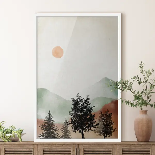 Poster Paisaje sereno con árboles y sol Nr f36592