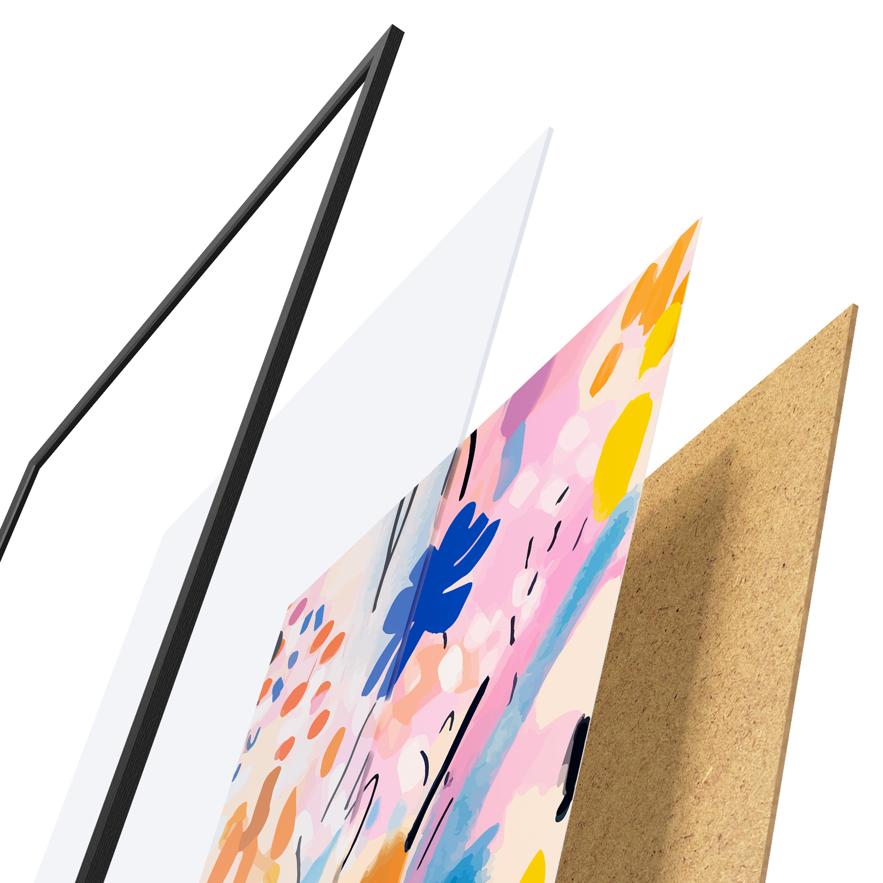 El póster consta de marco, plexiglás, imagen impresa y soporte de aglomerado. El póster puede colgarse inmediatamente en la pared gracias a los soportes de la parte posterior.