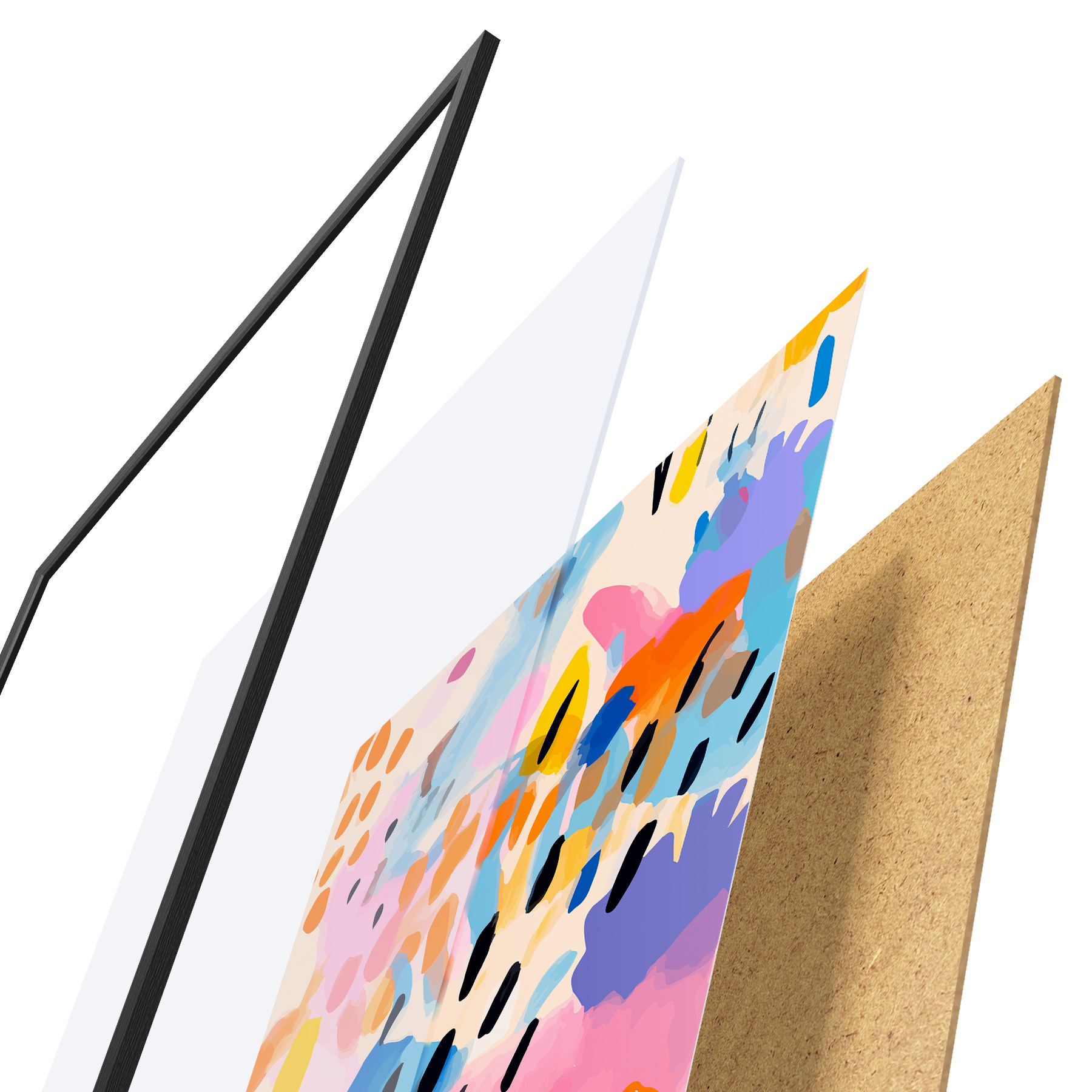 El póster consta de marco, plexiglás, imagen impresa y soporte de aglomerado. El póster puede colgarse inmediatamente en la pared gracias a los soportes de la parte posterior.