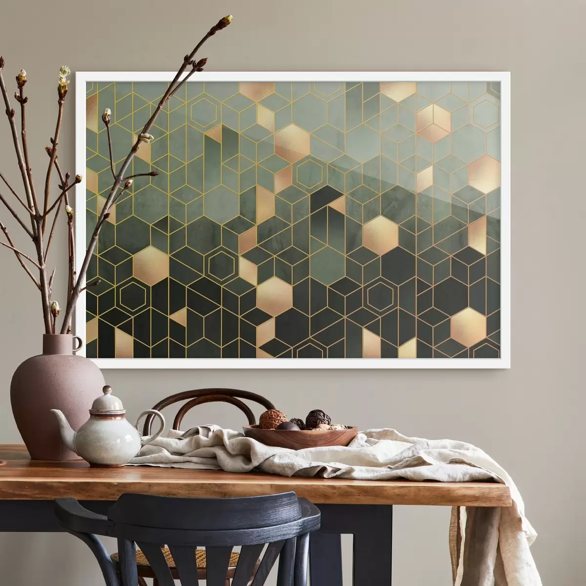 Poster Elegancia geométrica esmeralda y ámbar Nr f36602v2
