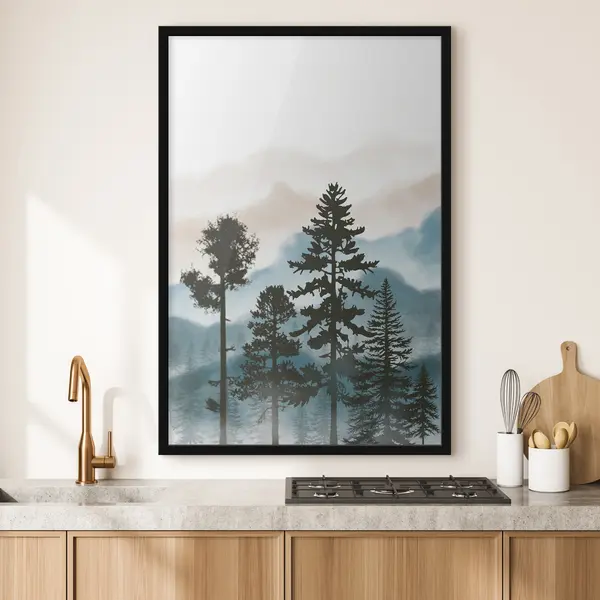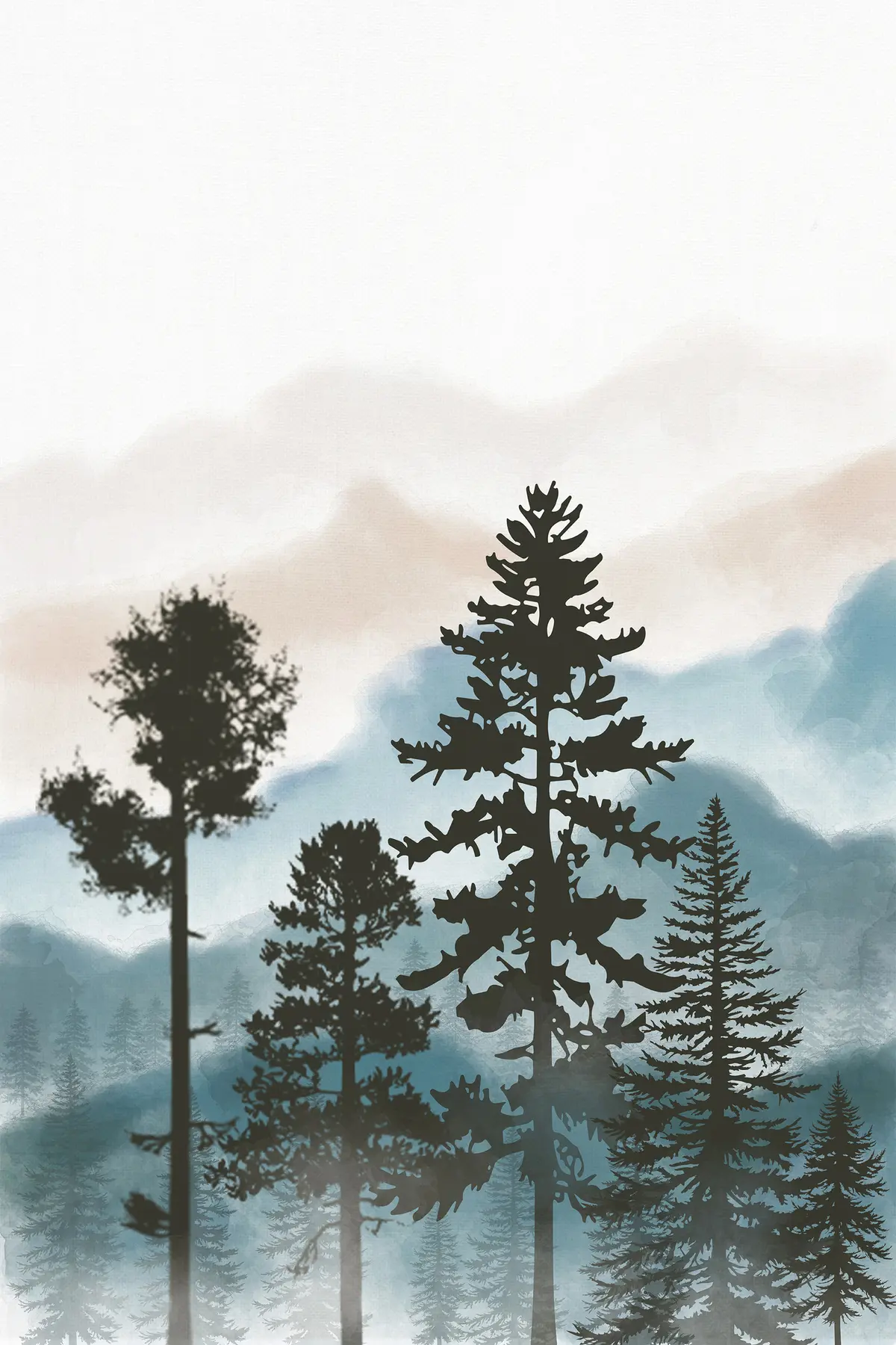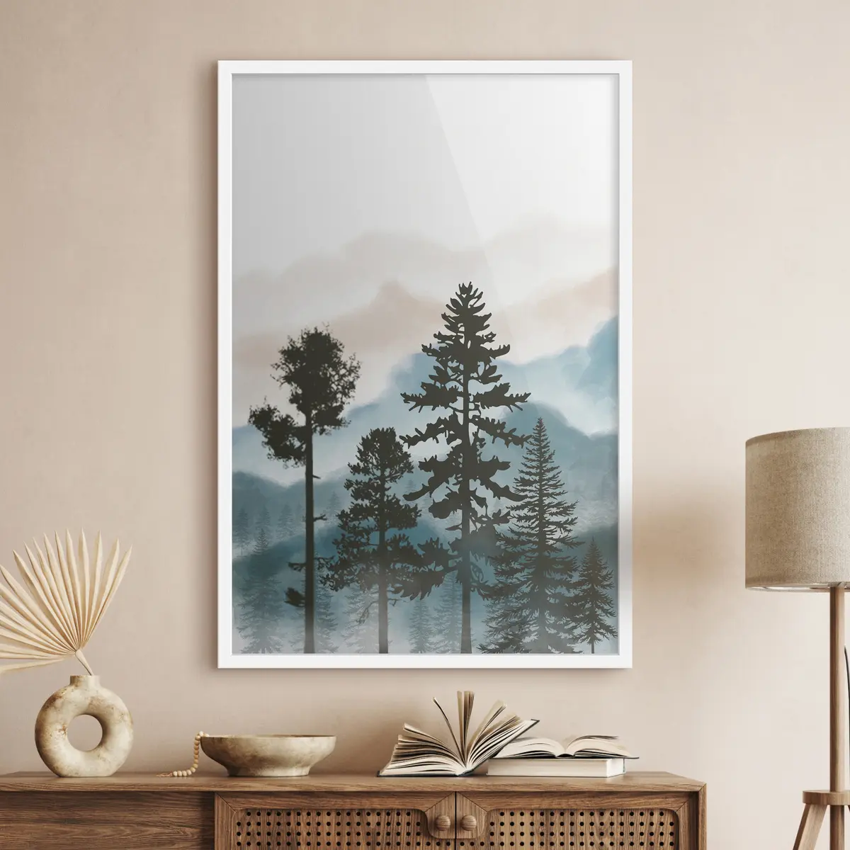 Poster Silueta de un bosque brumoso al amanecer Nr f36605