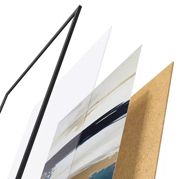 El póster consta de marco, plexiglás, imagen impresa y soporte de aglomerado. El póster puede colgarse inmediatamente en la pared gracias a los soportes de la parte posterior.