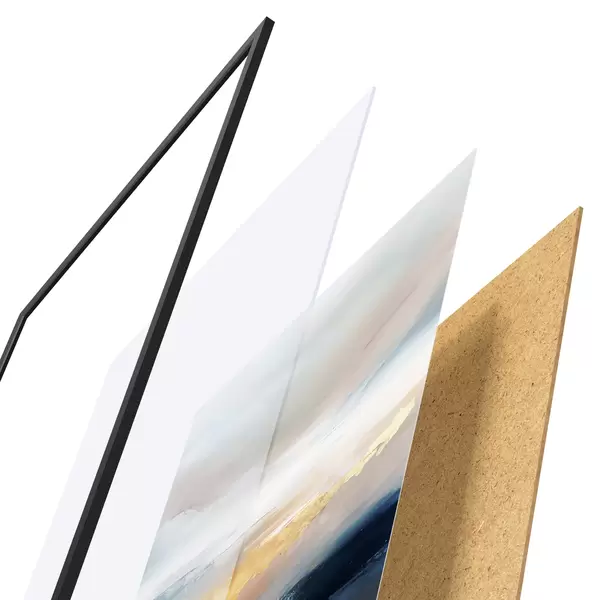 El póster consta de marco, plexiglás, imagen impresa y soporte de aglomerado. El póster puede colgarse inmediatamente en la pared gracias a los soportes de la parte posterior.