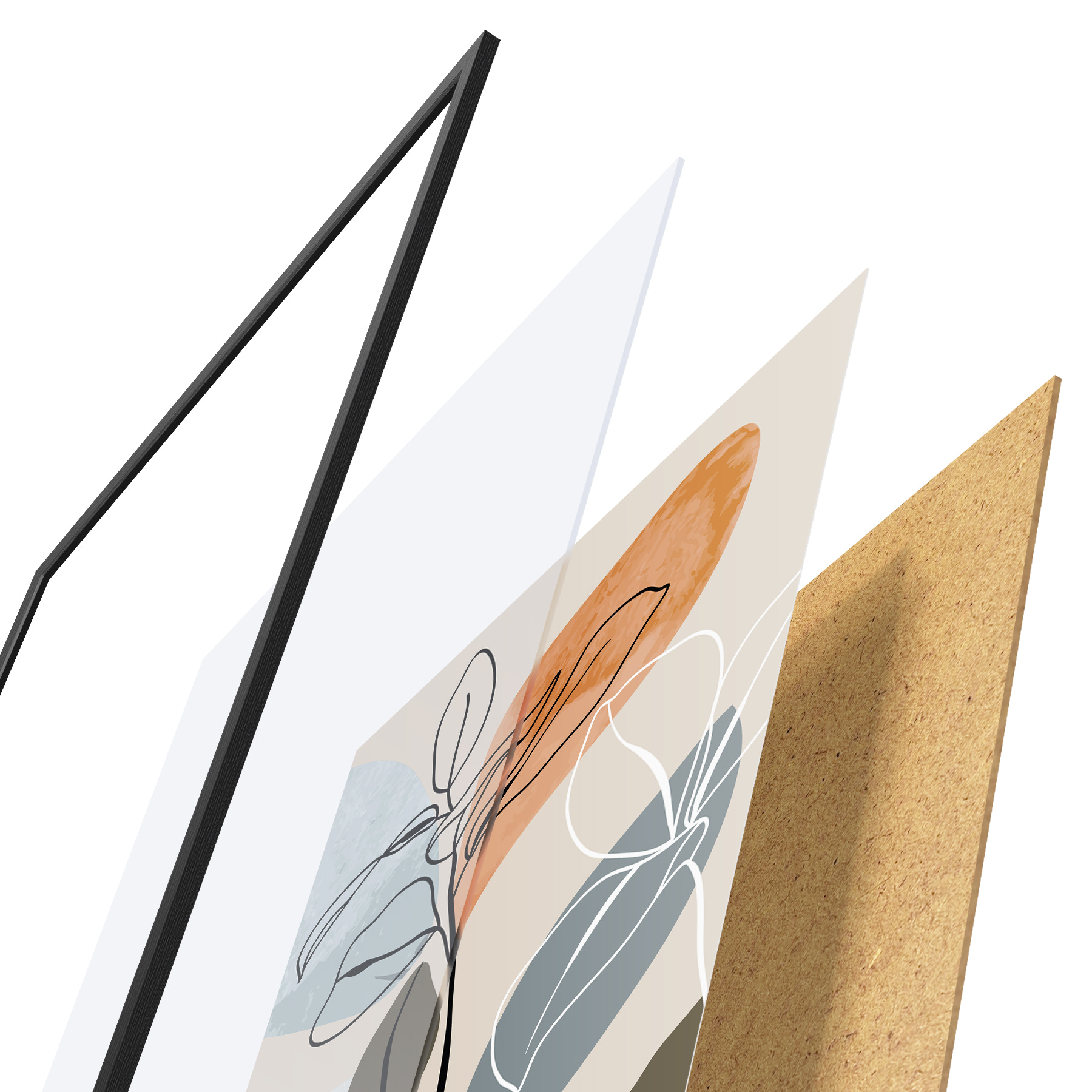 El póster consta de marco, plexiglás, imagen impresa y soporte de aglomerado. El póster puede colgarse inmediatamente en la pared gracias a los soportes de la parte posterior.