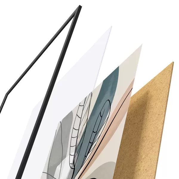 El póster consta de marco, plexiglás, imagen impresa y soporte de aglomerado. El póster puede colgarse inmediatamente en la pared gracias a los soportes de la parte posterior.