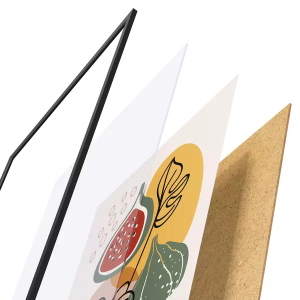 El póster consta de marco, plexiglás, imagen impresa y soporte de aglomerado. El póster puede colgarse inmediatamente en la pared gracias a los soportes de la parte posterior.