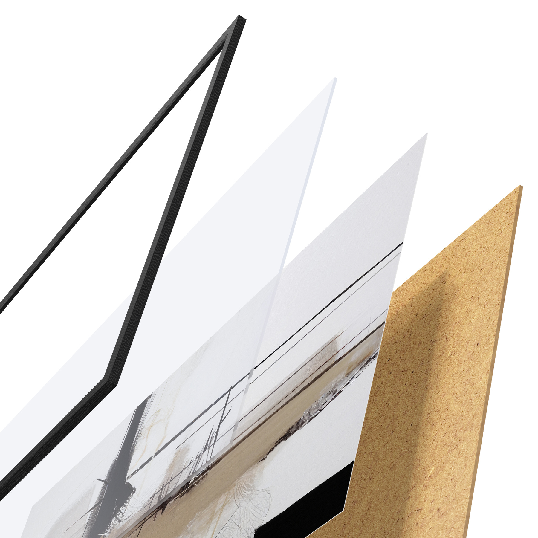 El póster consta de marco, plexiglás, imagen impresa y soporte de aglomerado. El póster puede colgarse inmediatamente en la pared gracias a los soportes de la parte posterior.