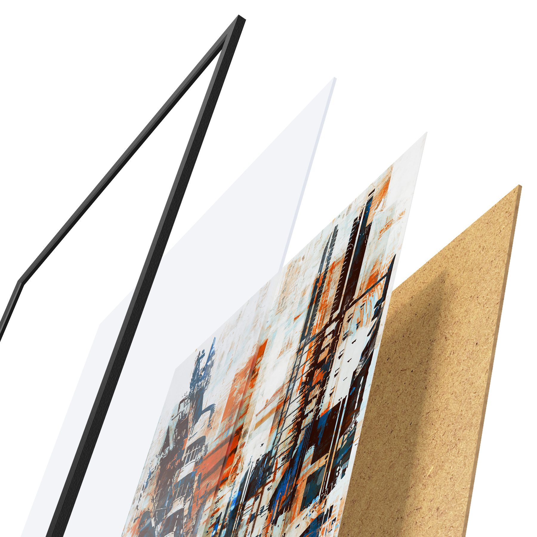 El póster consta de marco, plexiglás, imagen impresa y soporte de aglomerado. El póster puede colgarse inmediatamente en la pared gracias a los soportes de la parte posterior.