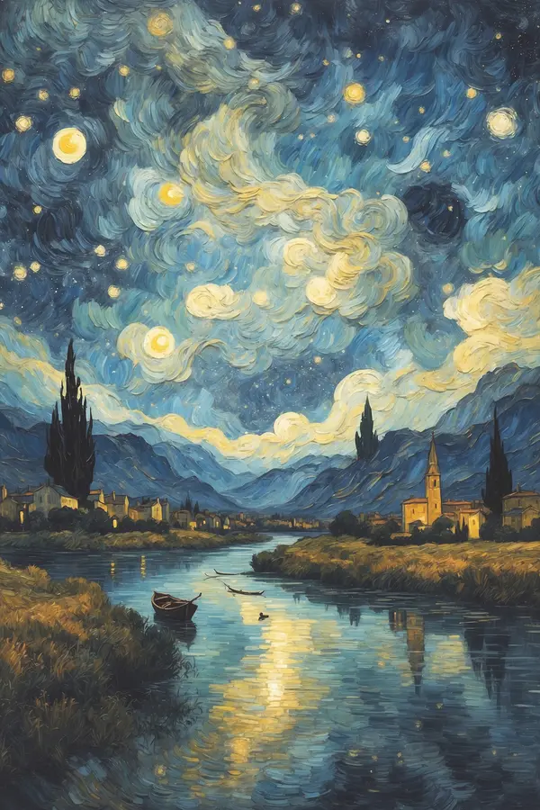 Poster Noche estrellada sobre aguas tranquilas f37123