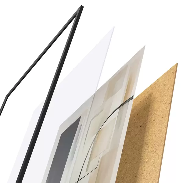 El póster consta de marco, plexiglás, imagen impresa y soporte de aglomerado. El póster puede colgarse inmediatamente en la pared gracias a los soportes de la parte posterior.