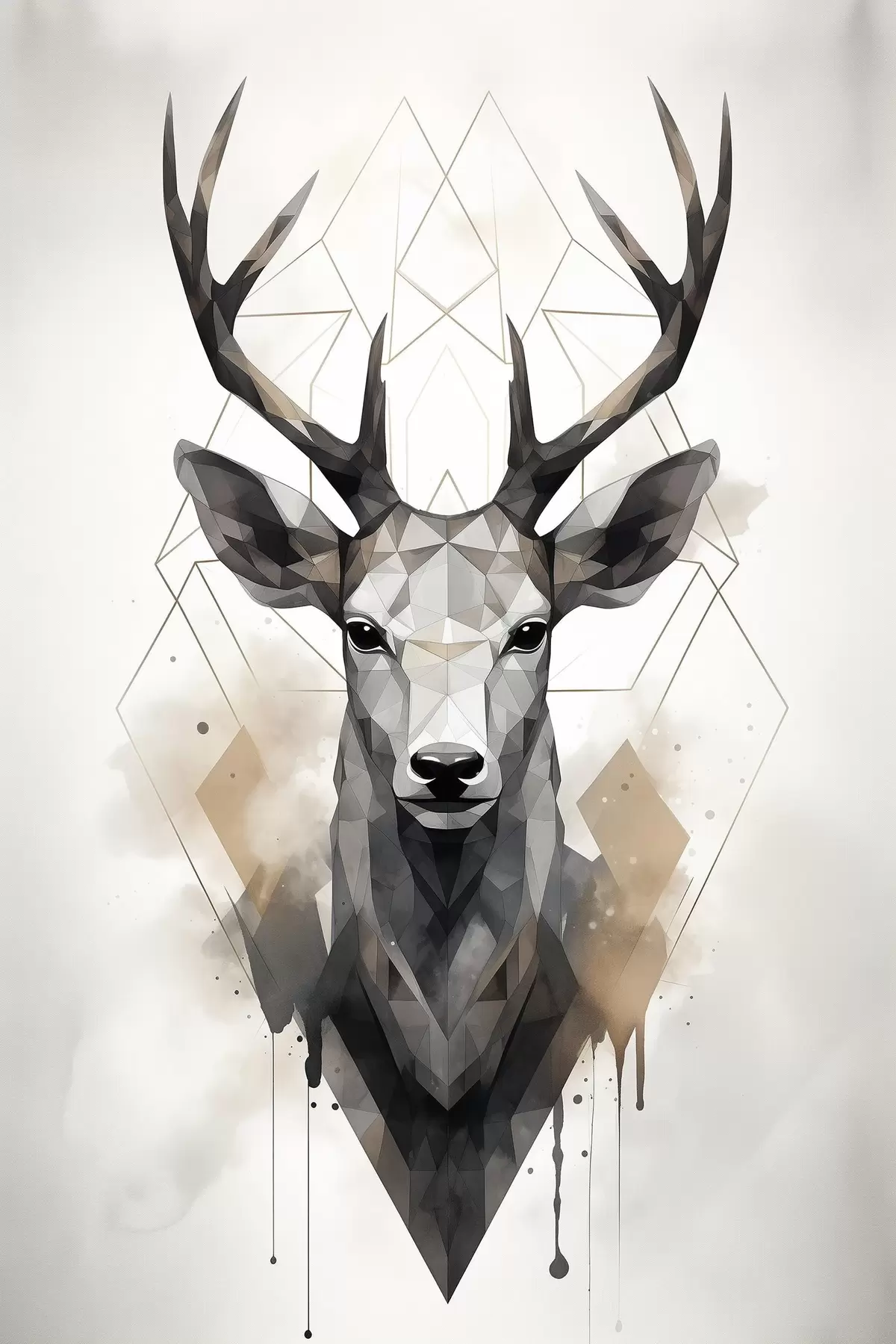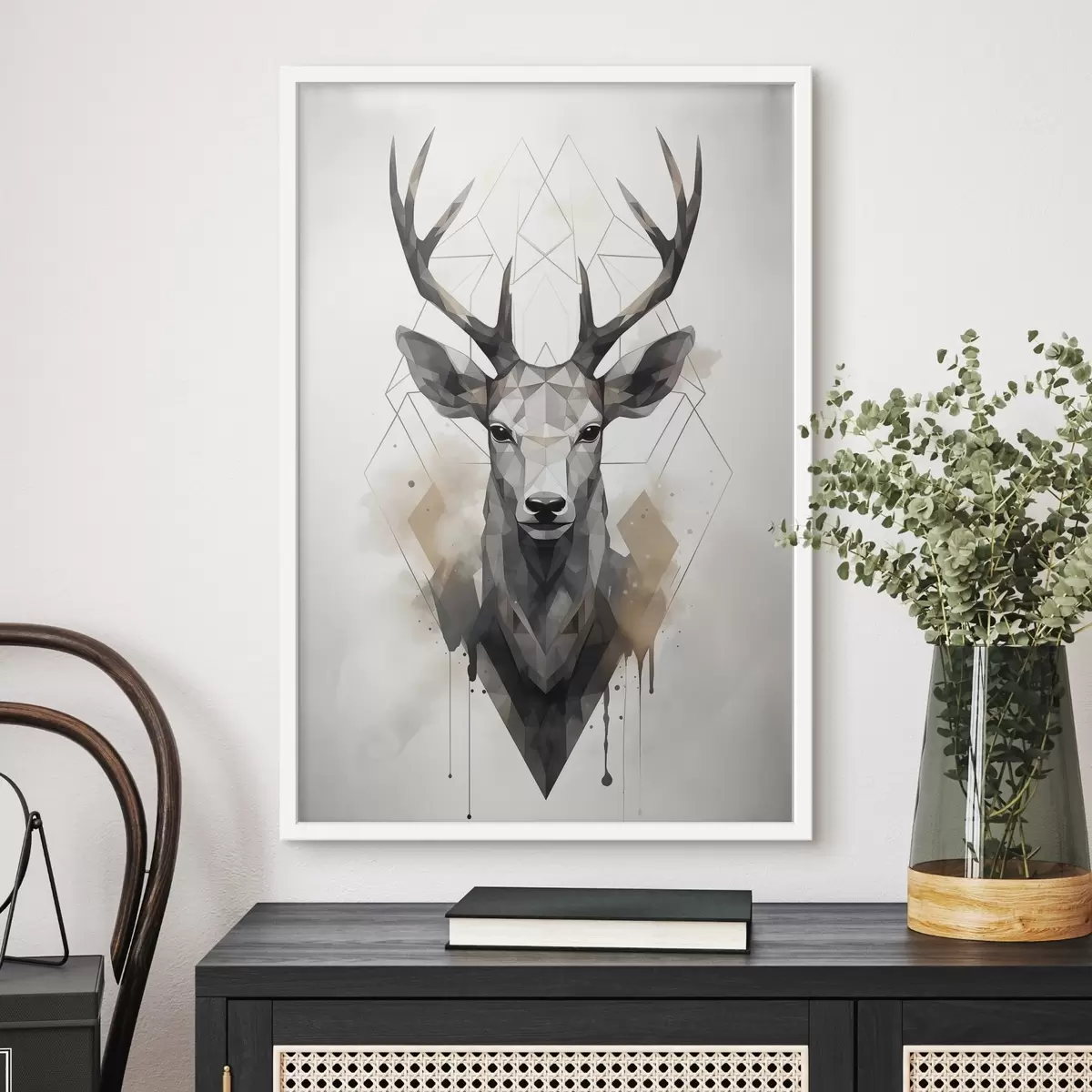Poster Ciervo con cornamenta y motivo geométrico Nr f37256