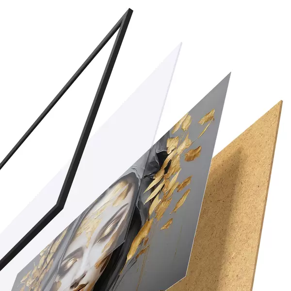 El póster consta de marco, plexiglás, imagen impresa y soporte de aglomerado. El póster puede colgarse inmediatamente en la pared gracias a los soportes de la parte posterior.