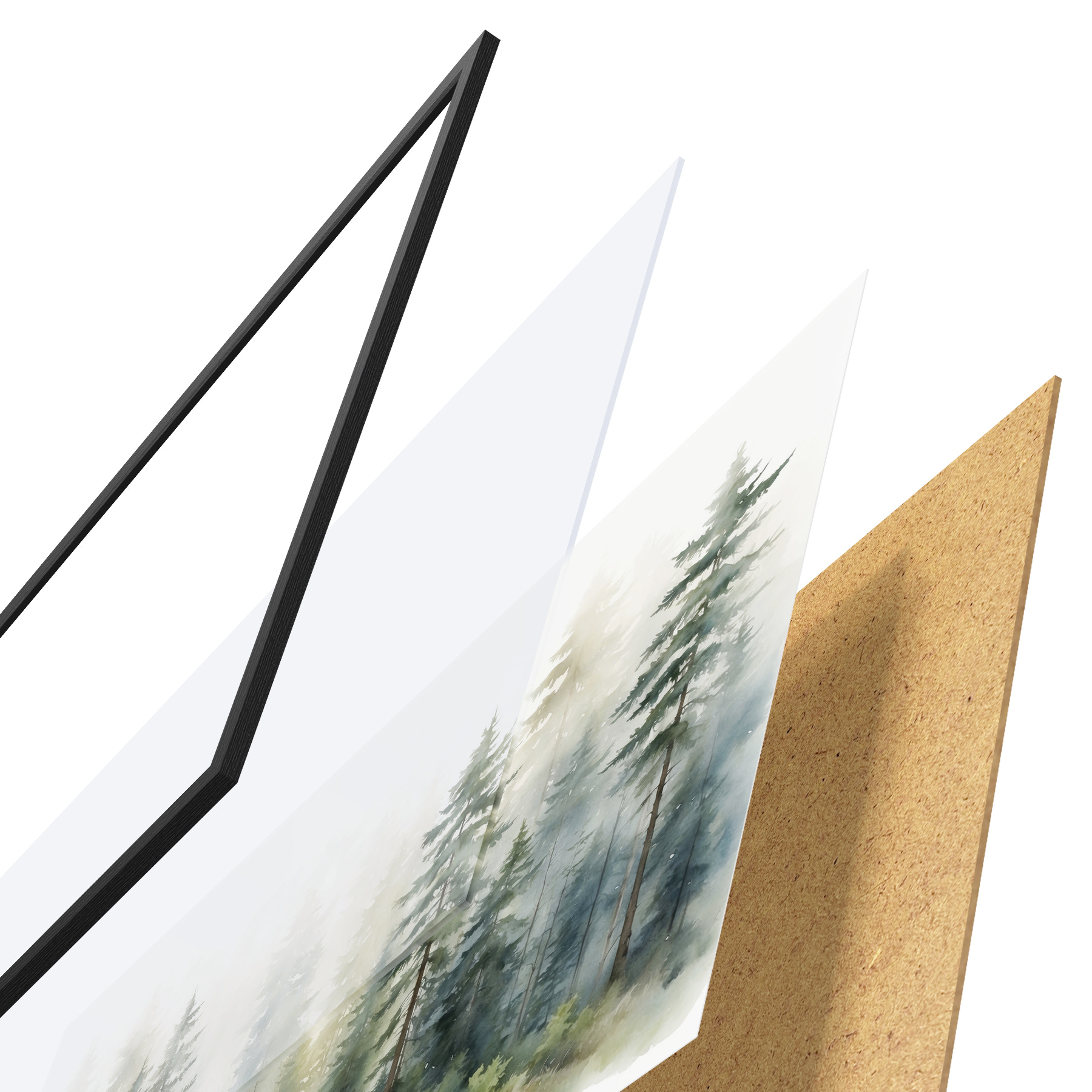 El póster consta de marco, plexiglás, imagen impresa y soporte de aglomerado. El póster puede colgarse inmediatamente en la pared gracias a los soportes de la parte posterior.