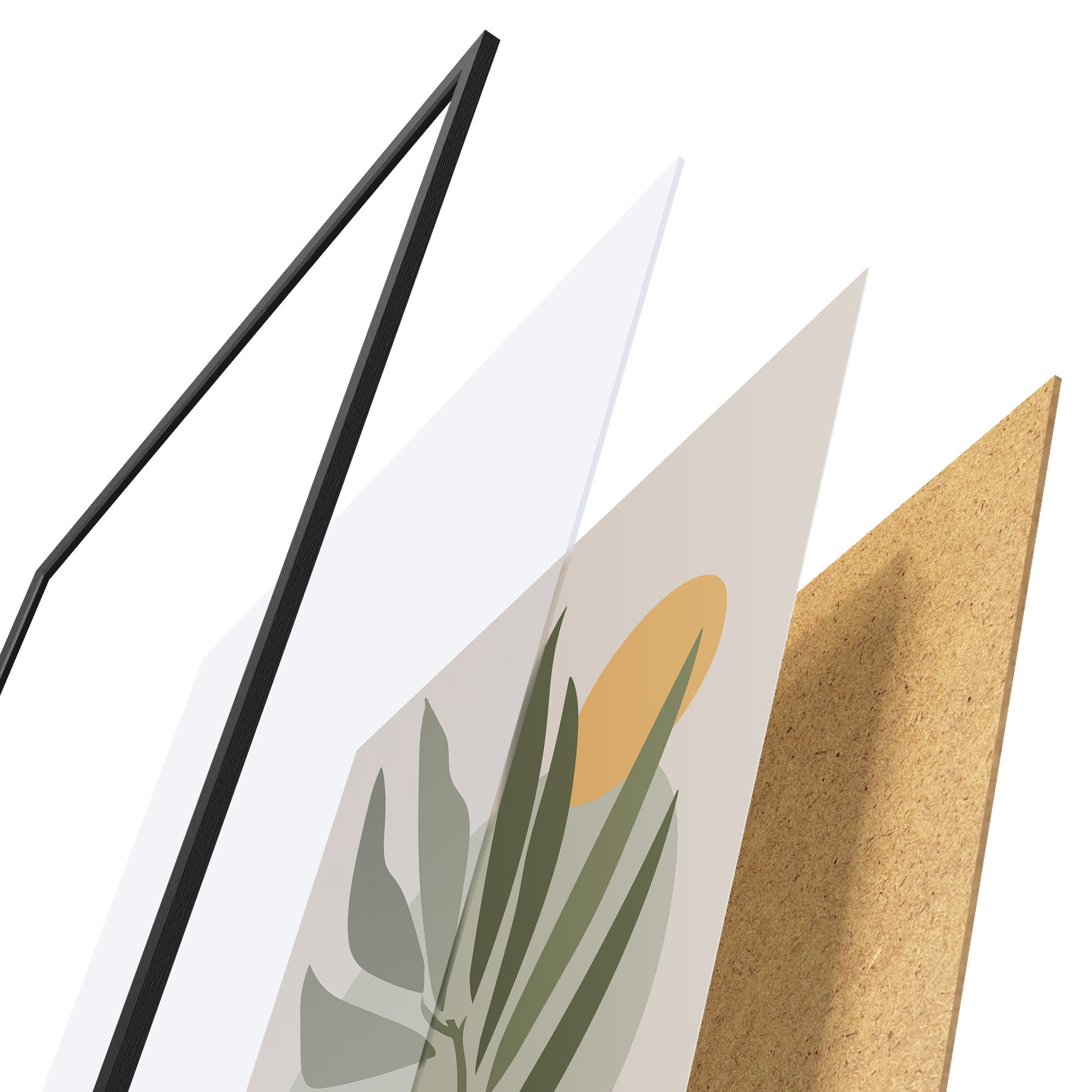 El póster consta de marco, plexiglás, imagen impresa y soporte de aglomerado. El póster puede colgarse inmediatamente en la pared gracias a los soportes de la parte posterior.
