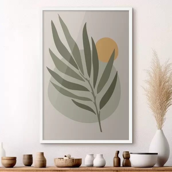 Poster Hoja verde con un círculo amarillo Nr f37442