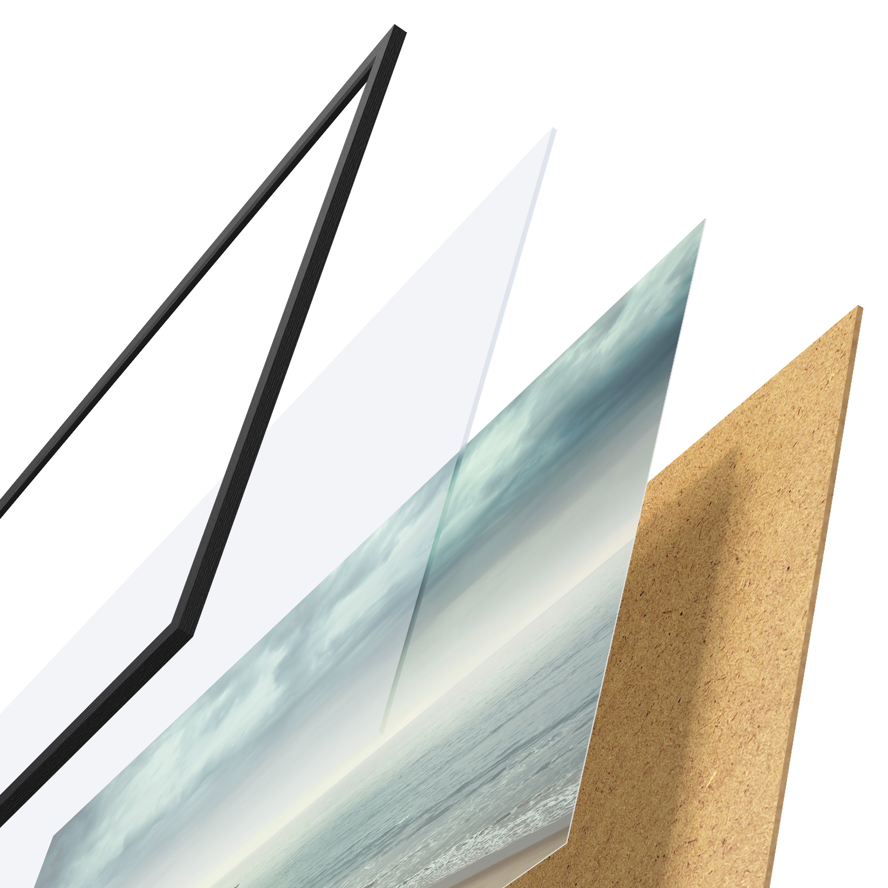 El póster consta de marco, plexiglás, imagen impresa y soporte de aglomerado. El póster puede colgarse inmediatamente en la pared gracias a los soportes de la parte posterior.
