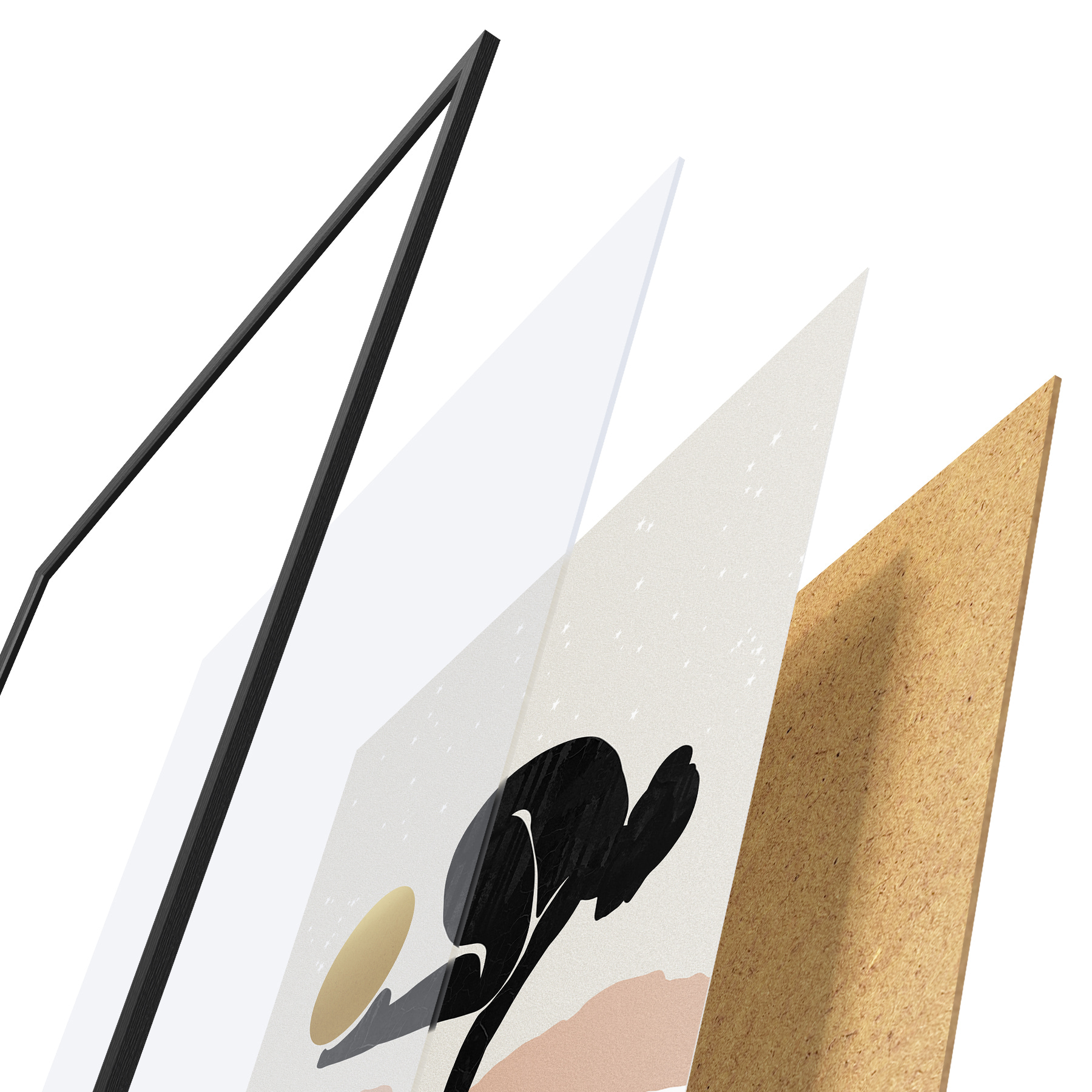 El póster consta de marco, plexiglás, imagen impresa y soporte de aglomerado. El póster puede colgarse inmediatamente en la pared gracias a los soportes de la parte posterior.