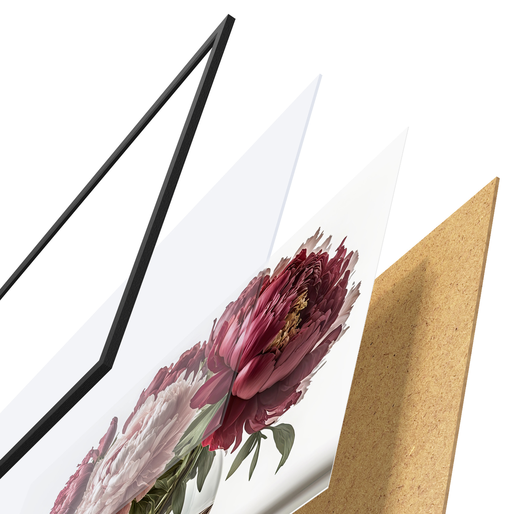 Poster Vibrantes peonías en un elegante arreglo floral en jarrón. Nr f37549
