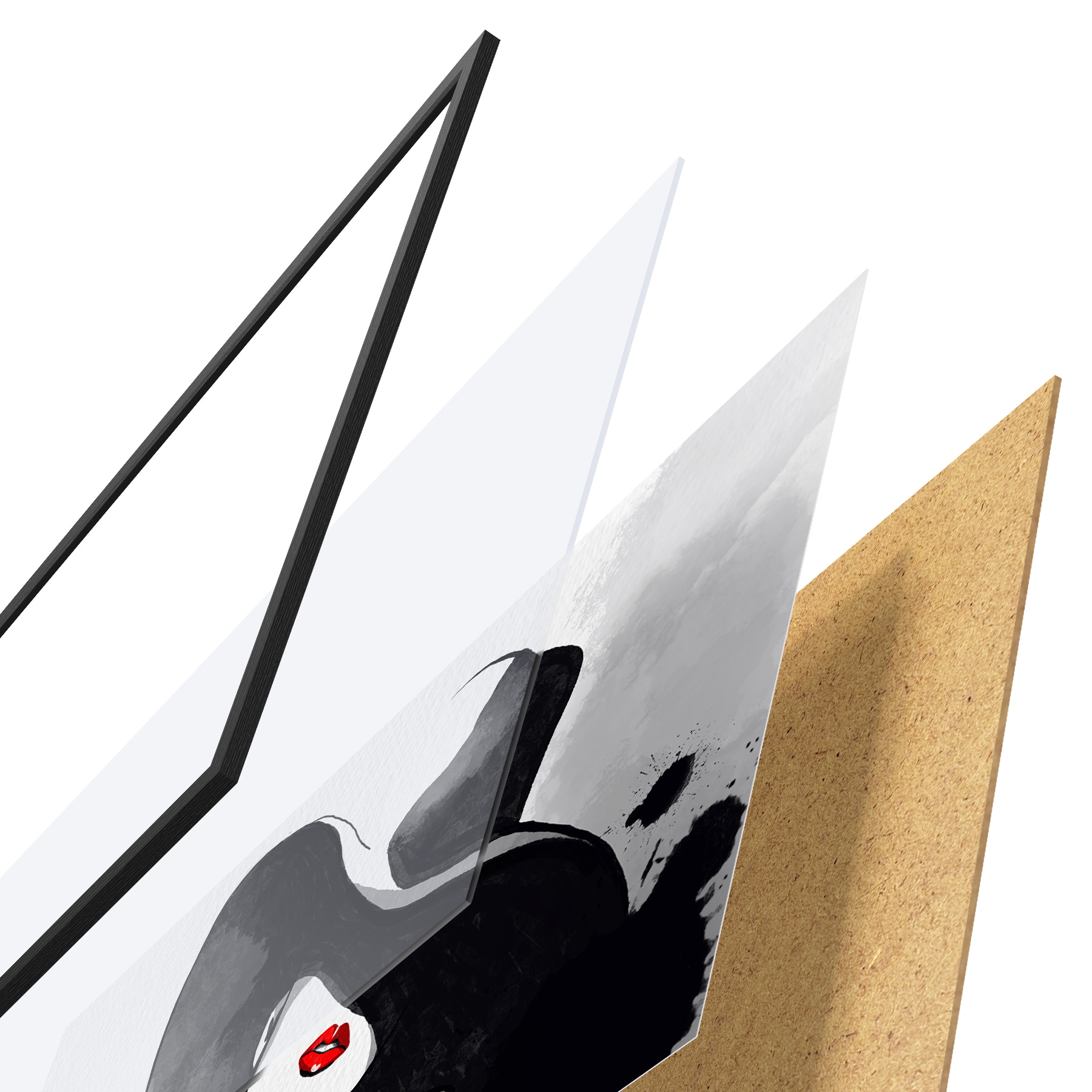El póster consta de marco, plexiglás, imagen impresa y soporte de aglomerado. El póster puede colgarse inmediatamente en la pared gracias a los soportes de la parte posterior.