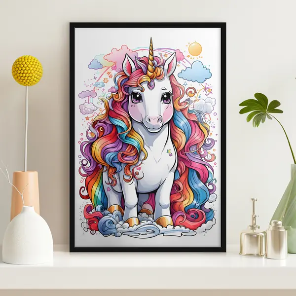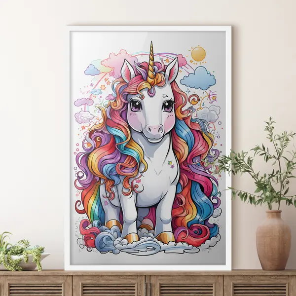 Poster Un unicornio colorido entre nubes de ensueño Nr f37766