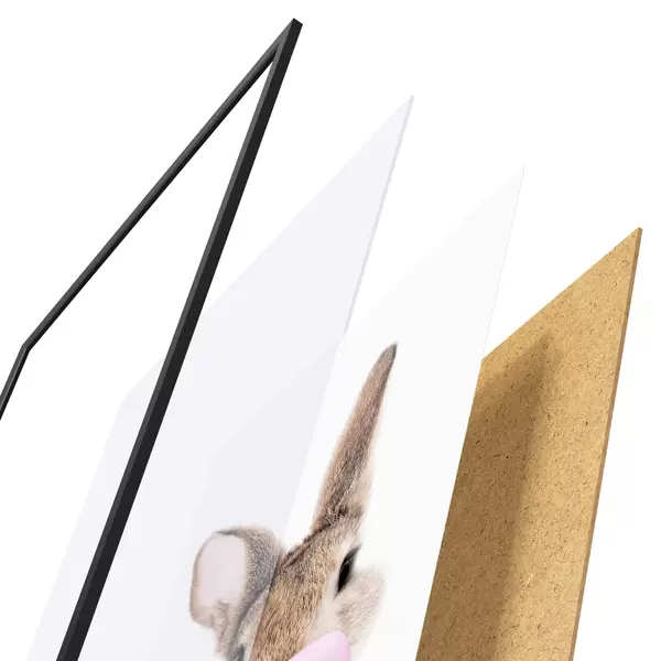 El póster consta de marco, plexiglás, imagen impresa y soporte de aglomerado. El póster puede colgarse inmediatamente en la pared gracias a los soportes de la parte posterior.