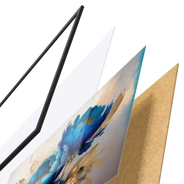 El póster consta de marco, plexiglás, imagen impresa y soporte de aglomerado. El póster puede colgarse inmediatamente en la pared gracias a los soportes de la parte posterior.