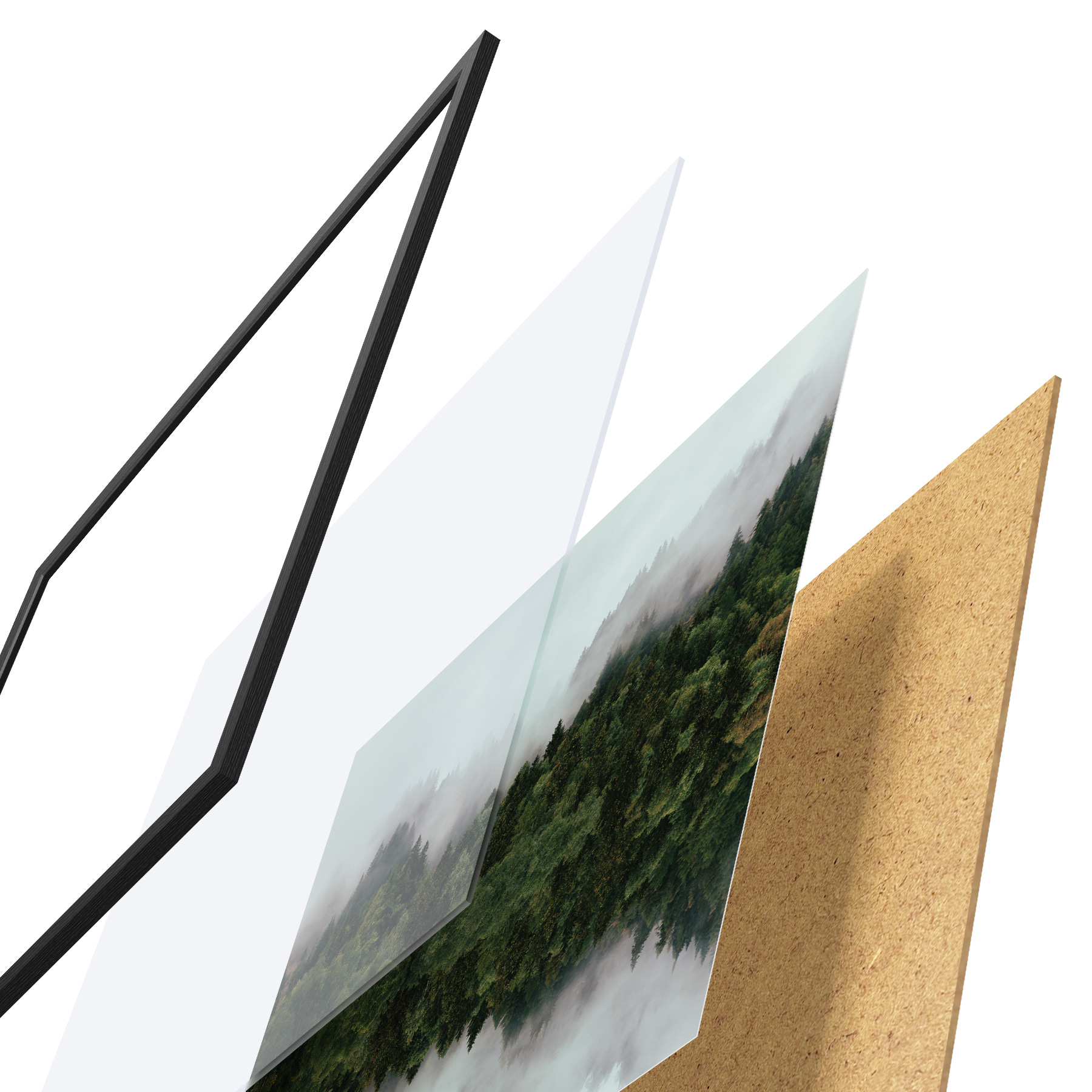 El póster consta de marco, plexiglás, imagen impresa y soporte de aglomerado. El póster puede colgarse inmediatamente en la pared gracias a los soportes de la parte posterior.