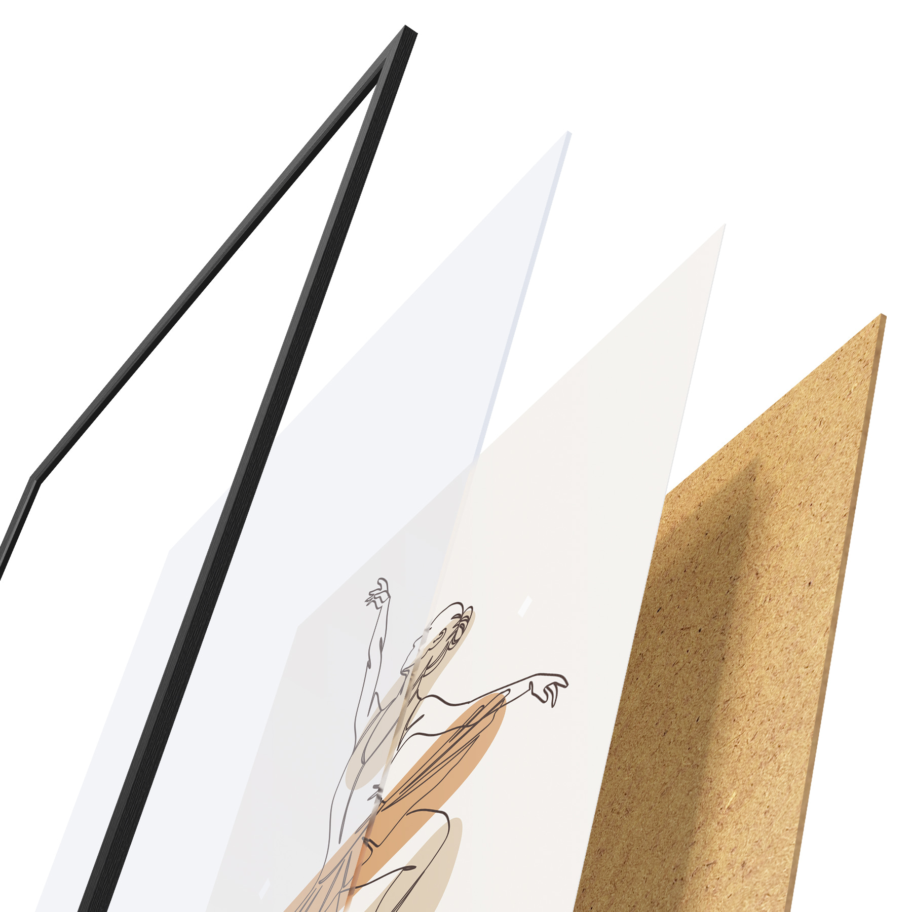 El póster consta de marco, plexiglás, imagen impresa y soporte de aglomerado. El póster puede colgarse inmediatamente en la pared gracias a los soportes de la parte posterior.