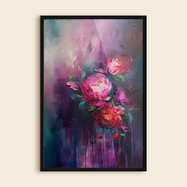 Poster Pintar rosas, flores en flor al estilo de pintura al óleo, sobre un fondo morado oscuro Nr f38108